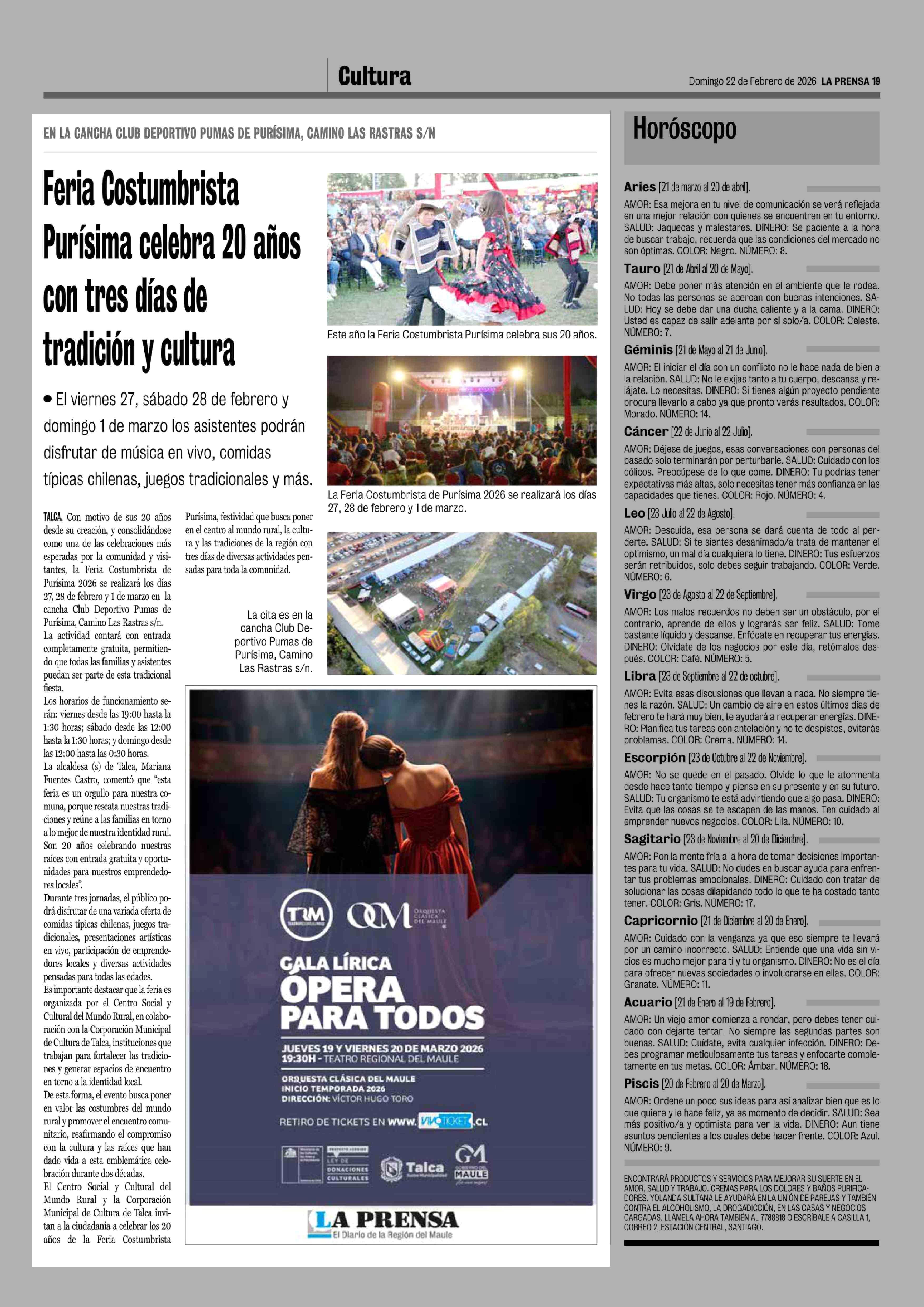 Fecha: 22-02-2026 Sector: Noticia general Región: Región del Maule