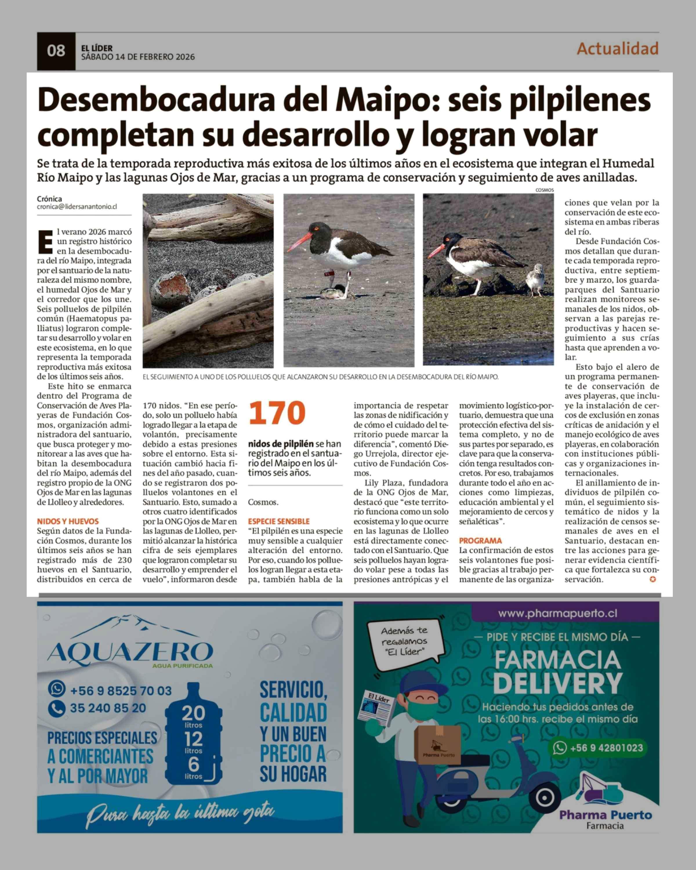 Desembocadura del Maipo: seis pilpilenes completan su desarrollo y logran volar 14-02-2026 El Líder |