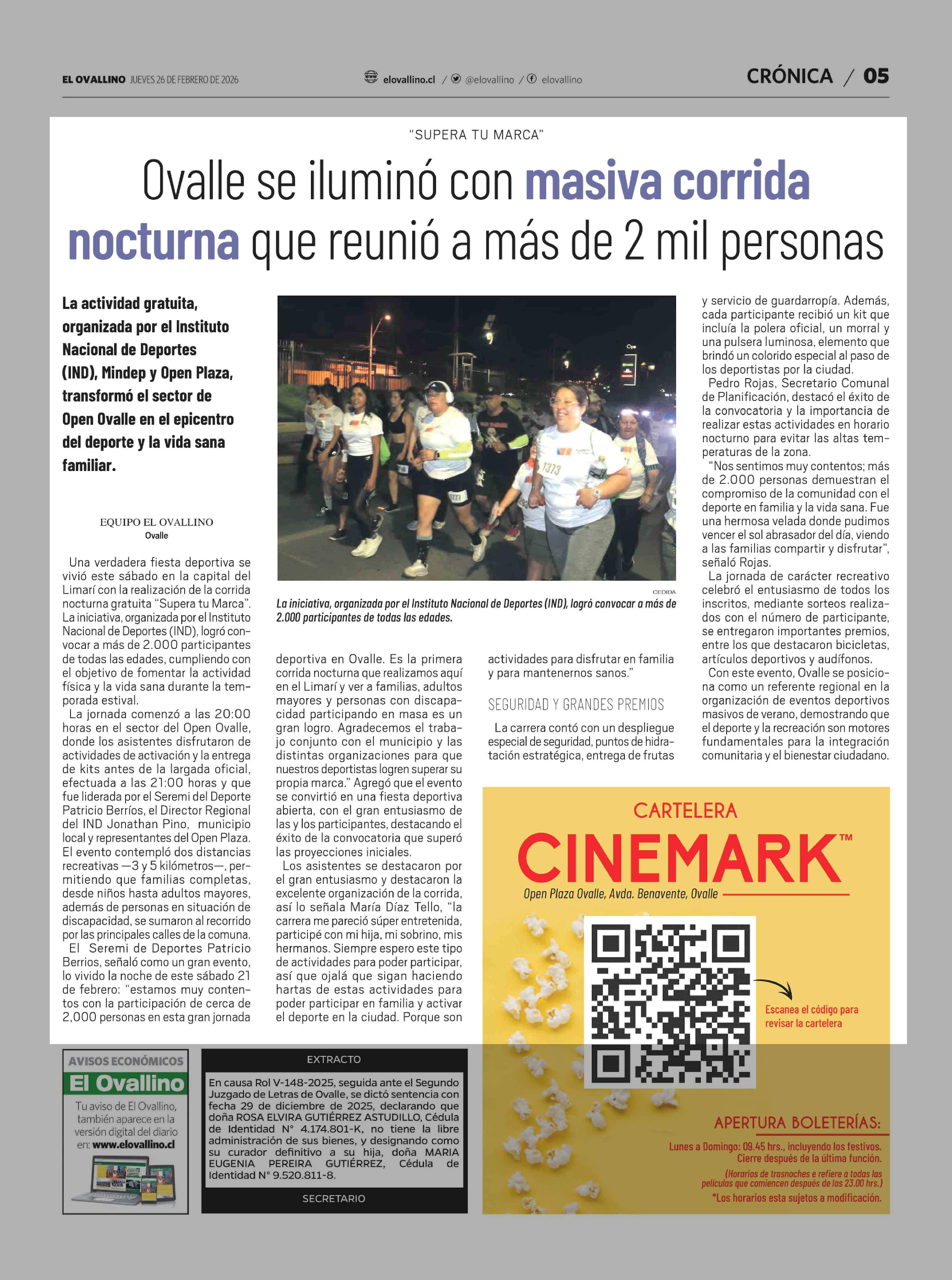| Título: | Ovalle se iluminó con masiva corrida nocturna que reunió a más de 2 mil personas |