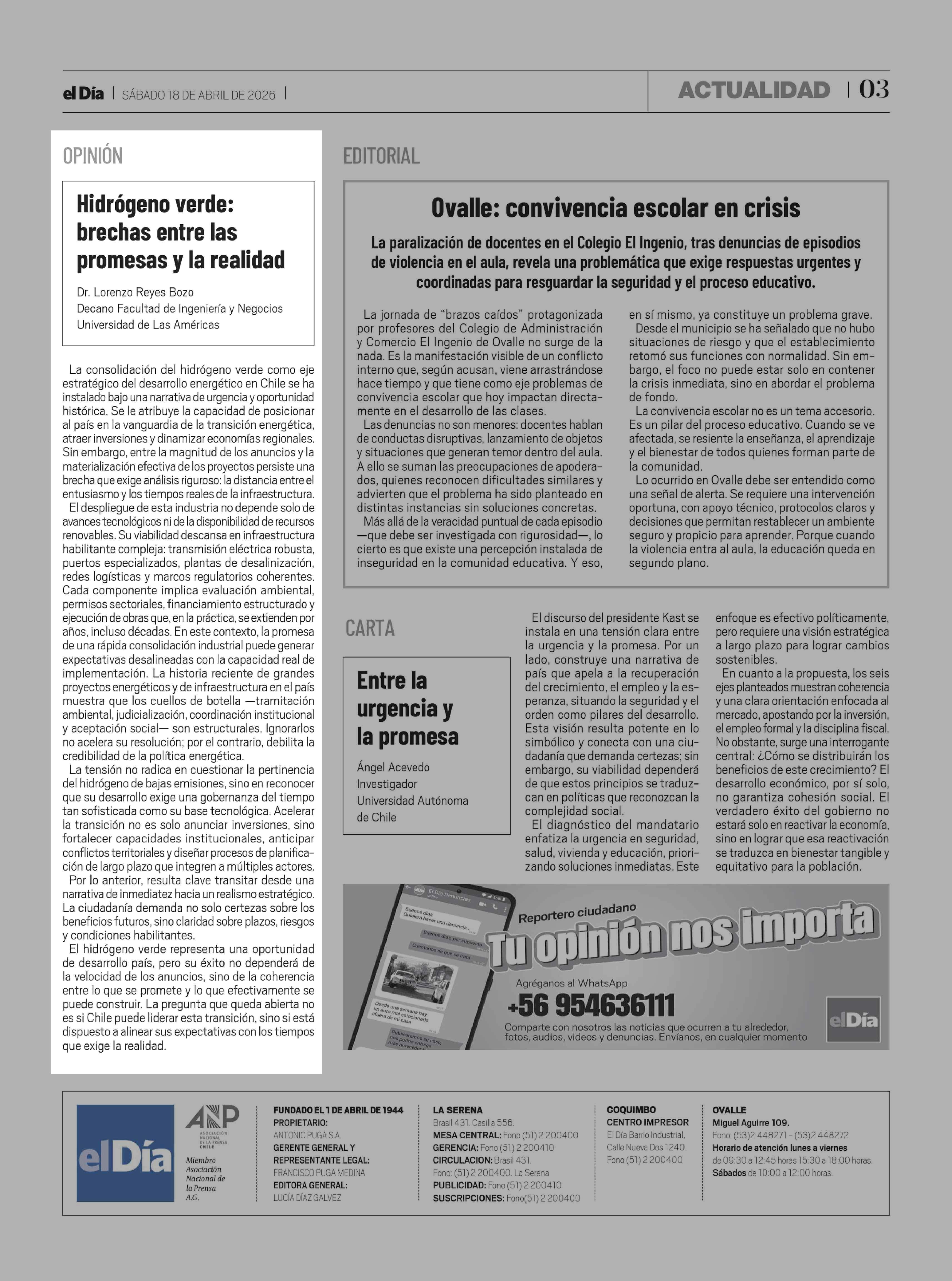 Fecha: 18-04-2026 Sector: Columnas de Opinión Región: Región de Coquimbo