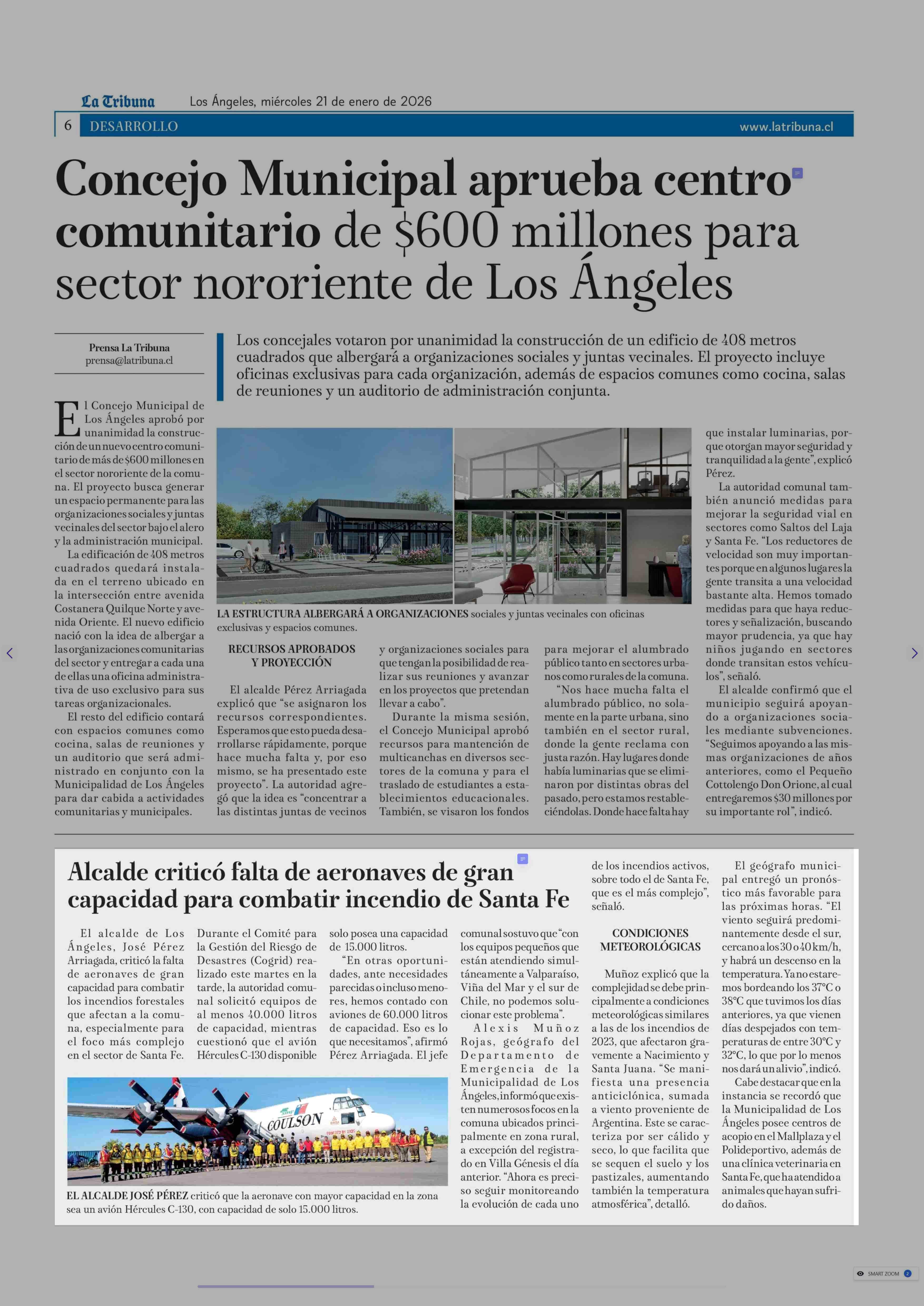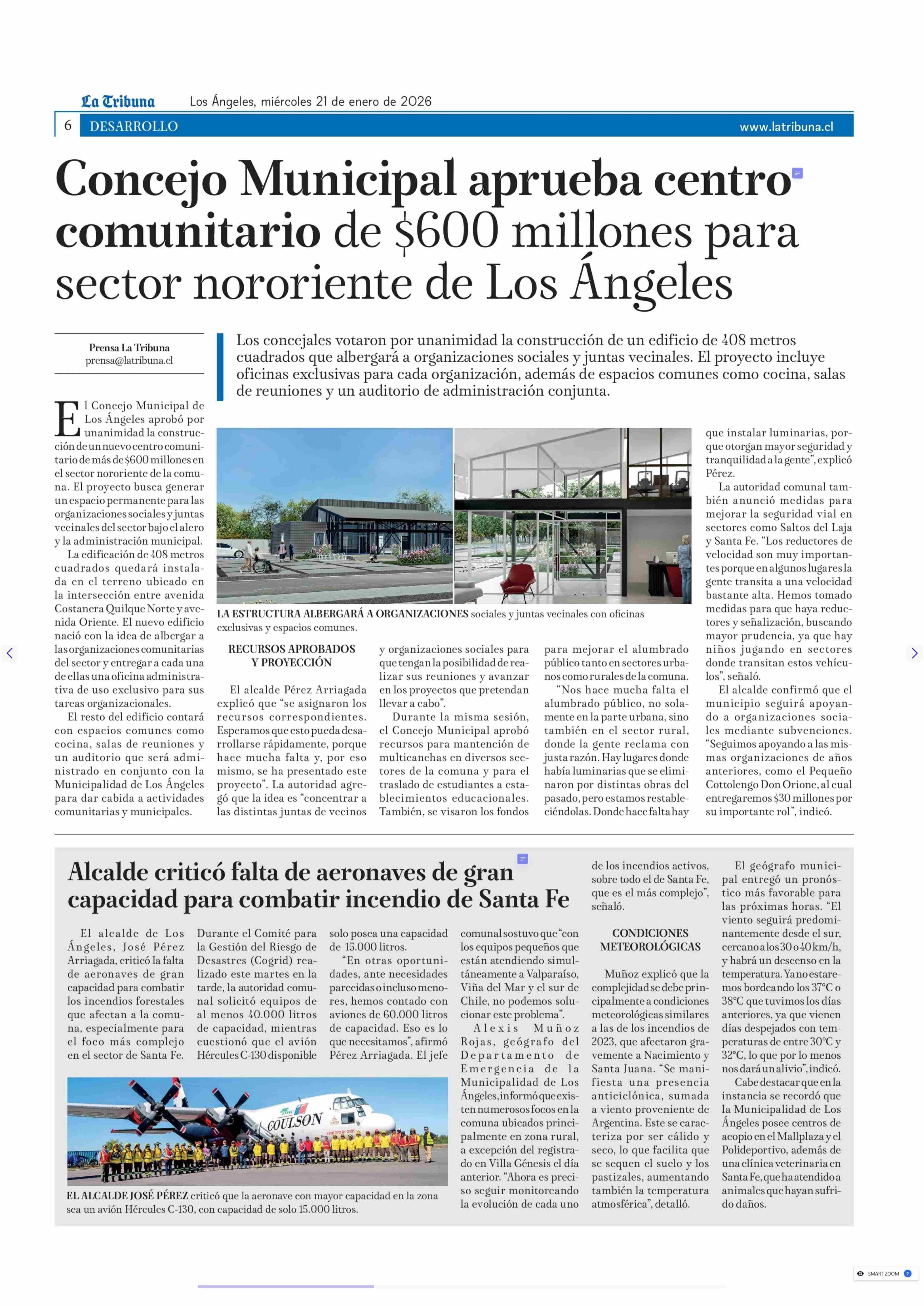 Alcalde criticó falta de aeronaves de gran capacidad para combatir incendio de Santa Fe 21-01-2026 La Tribuna |