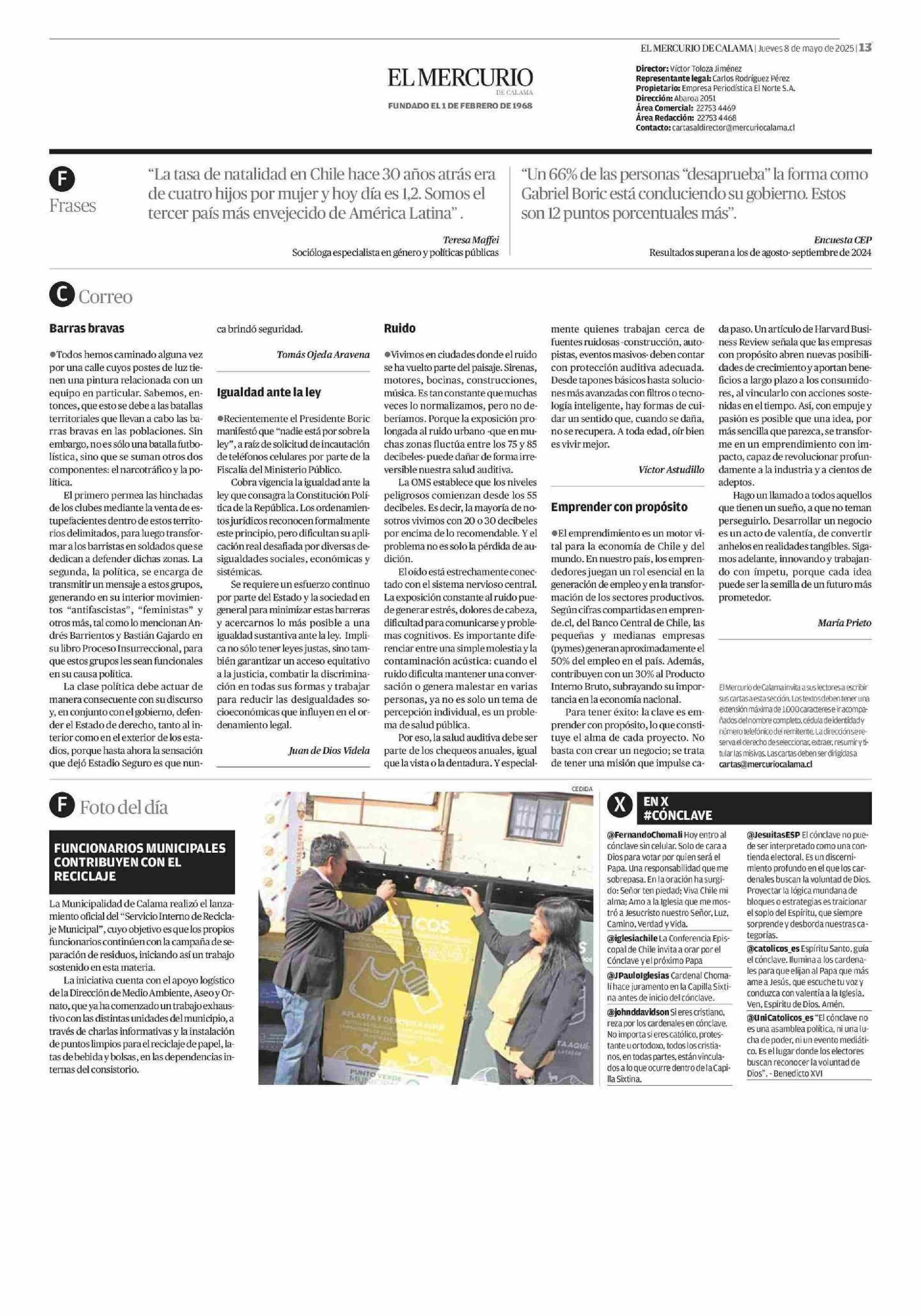 Foto del día 08-05-2025 El Mercurio de Calama |