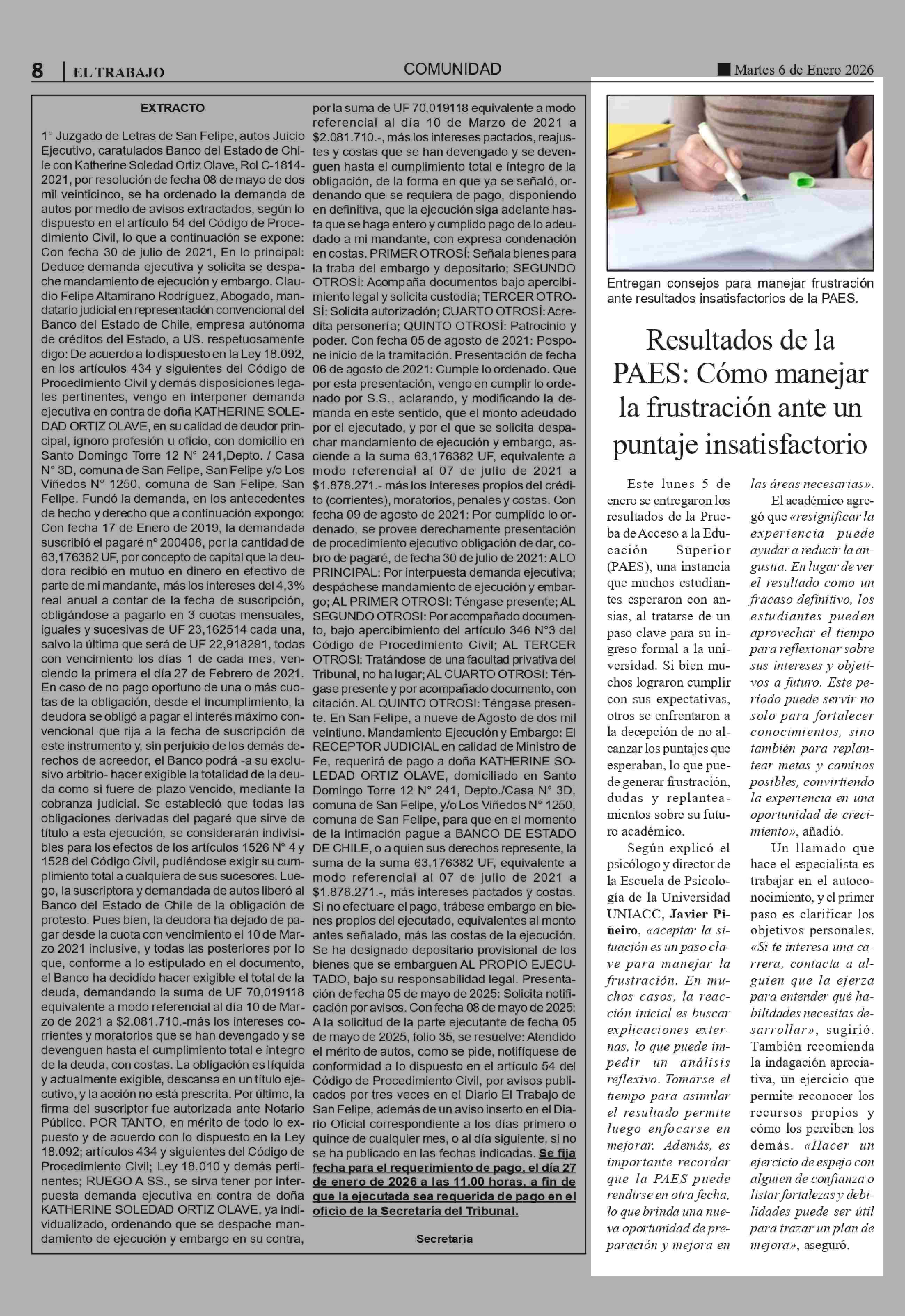 Fuente: El Trabajo (El Trabajo) Página(s): 8