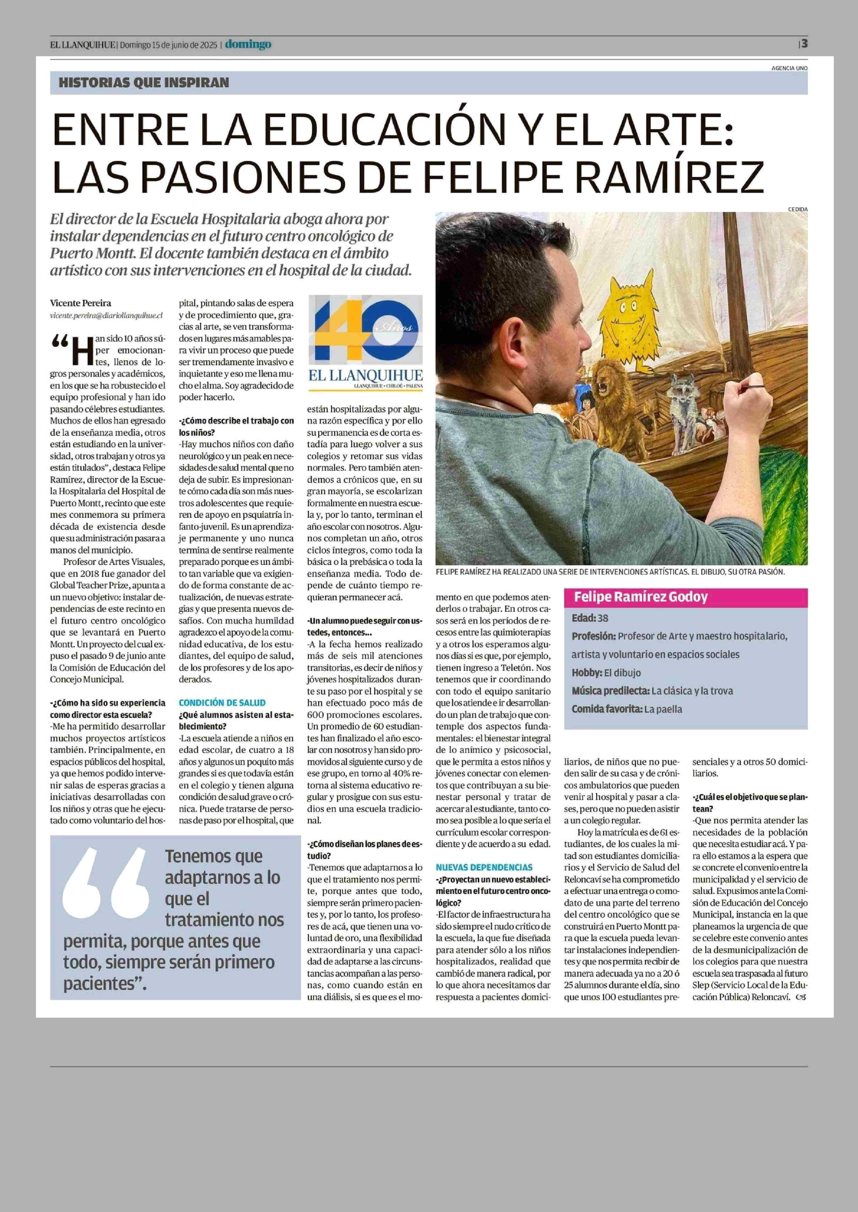ENTRE LA EDUCACIÓN Y EL ARTE: LAS PASIONES DE FELIPE RAMÍREZ 15-06-2025 El Llanquihue |
