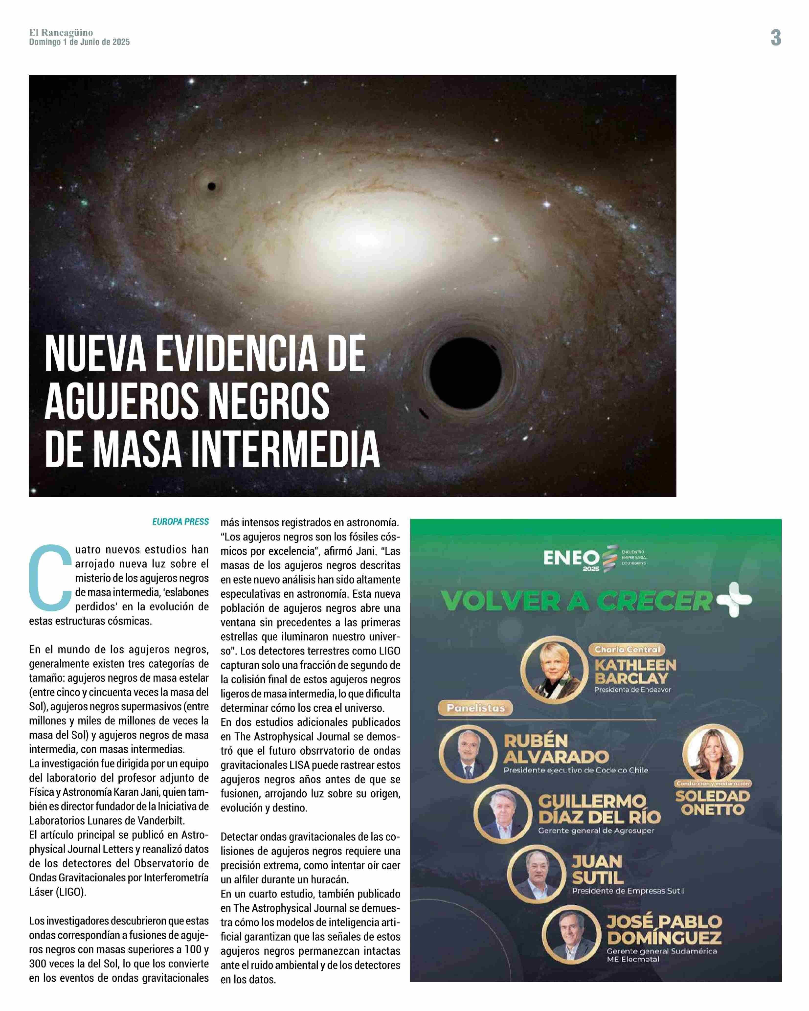 NUEVA EVIDENCIA DE AGUJEROS NEGROS DE MASA INTERMEDIA 01-06-2025 El Rancagüino |