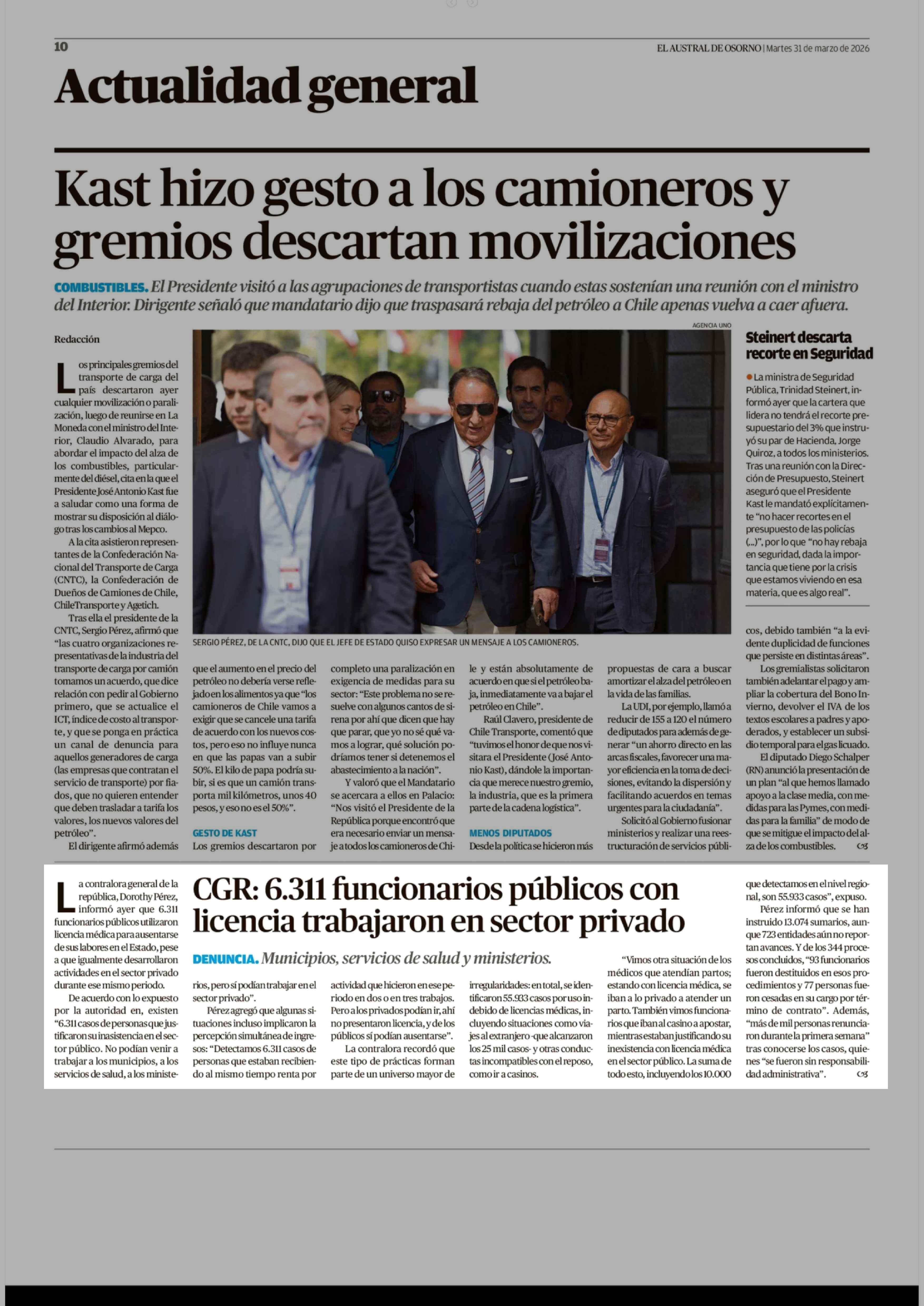 CGR: 6.311 funcionarios públicos con licencia trabajaron en sector privado 31-03-2026 El Austral de Osorno |