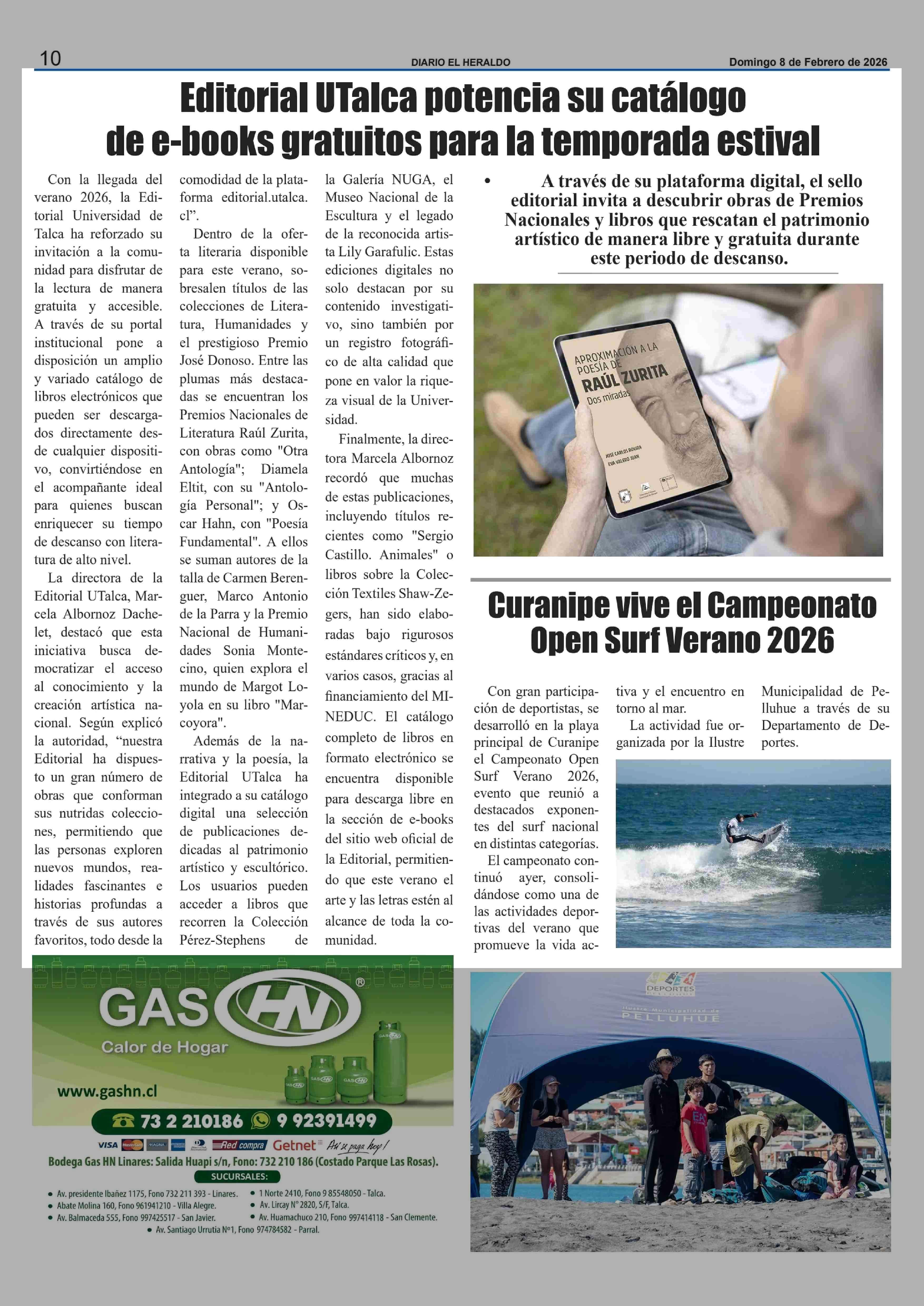 Editorial UTalca potencia su catálogo de e-books gratuitos para la temporada estival 08-02-2026 El Heraldo |