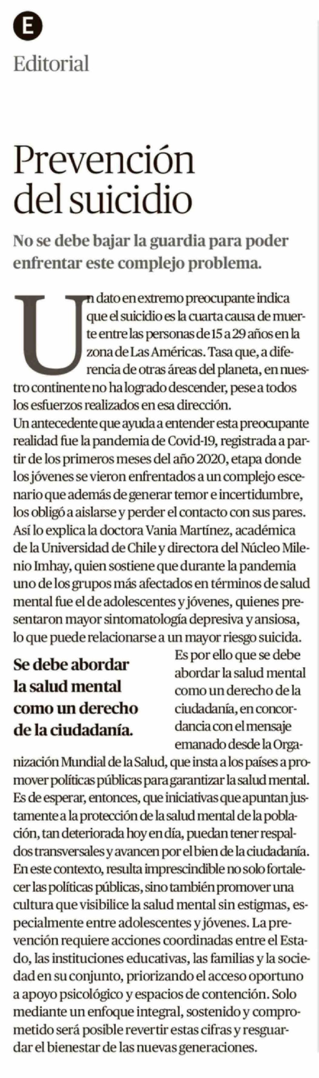 Editorial: Prevención del suicidio 13-04-2026 Diario Austral Región de Los Ríos |