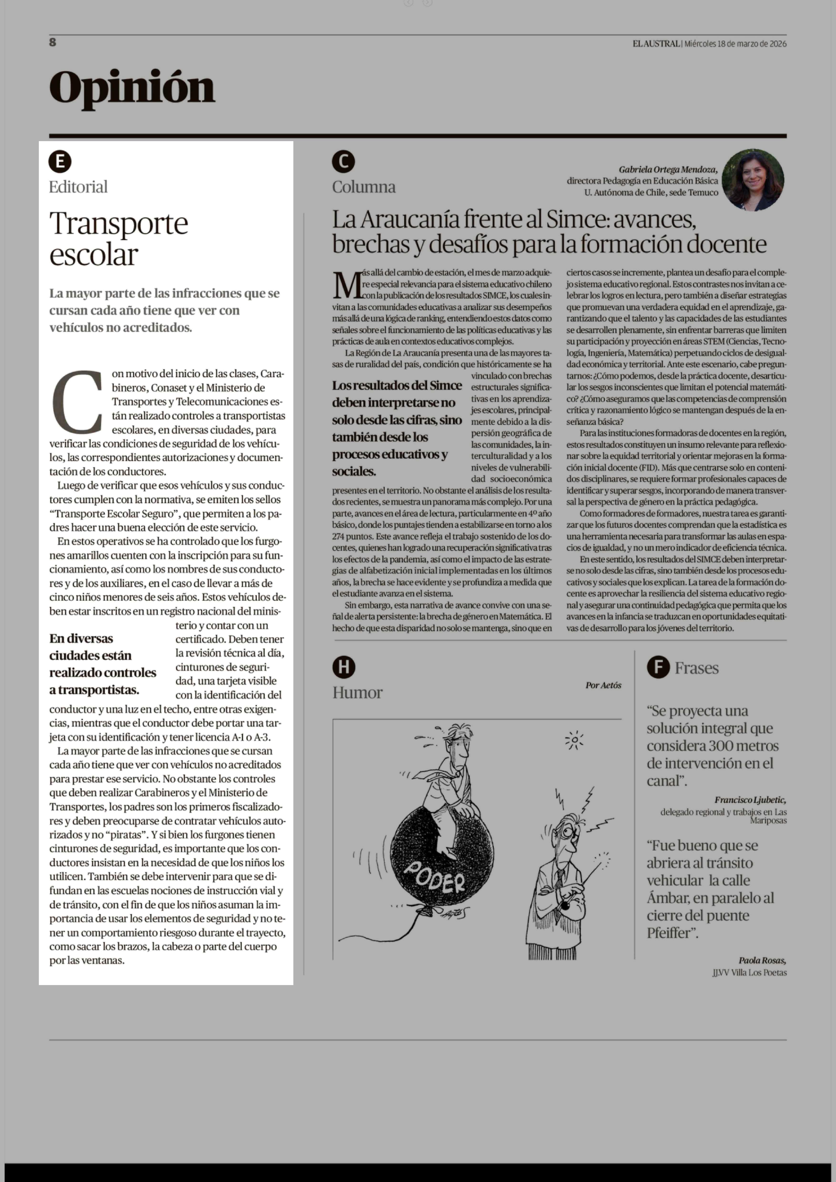 Editorial: Transporte escolar 18-03-2026 El Austral de la Araucanía |