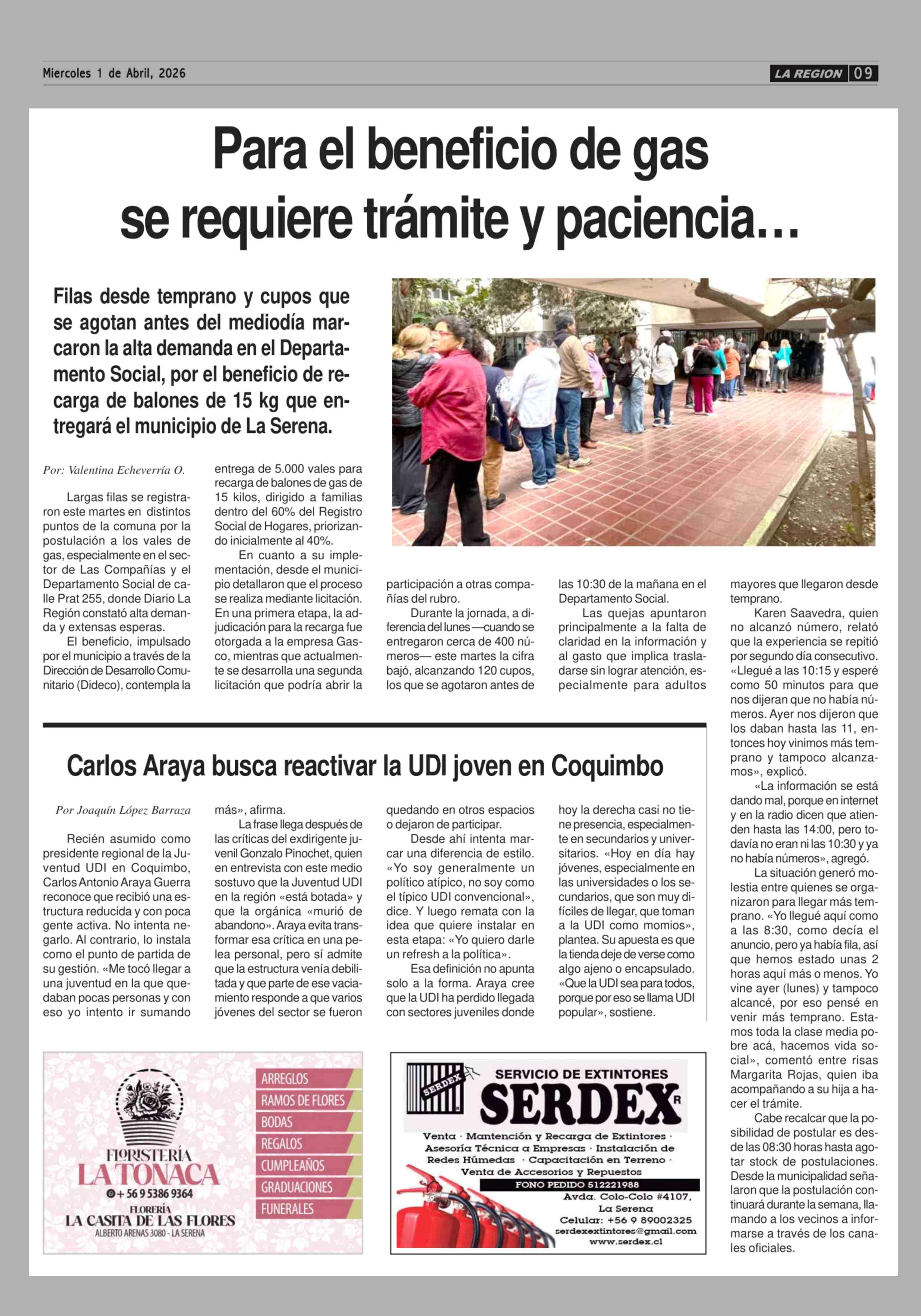 Para el beneficio de gas se requiere trámite y paciencia ... 01-04-2026 Diario la Región |