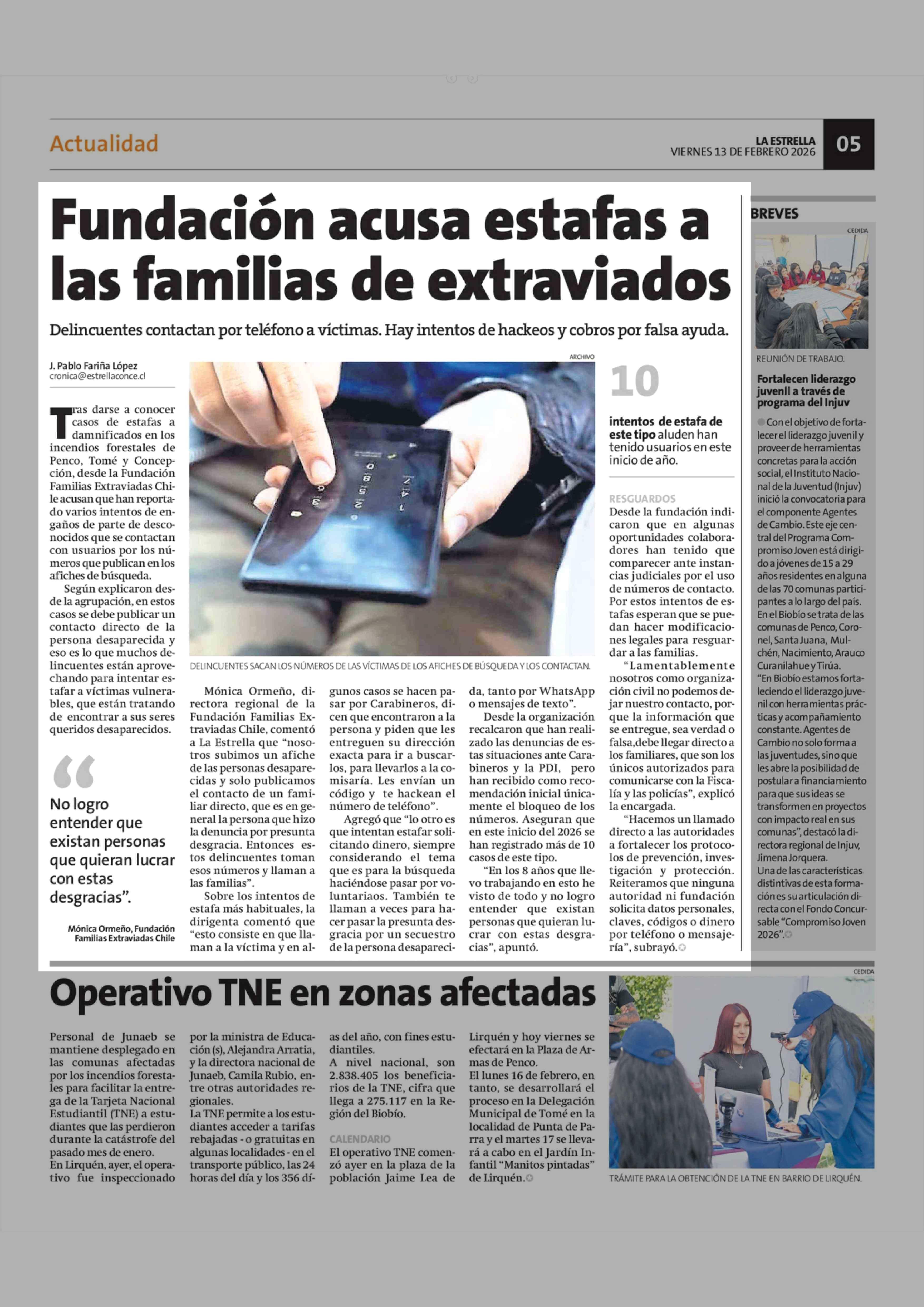 Fundación acusa estafas a las familias de extraviados 13-02-2026 La Estrella de Concepción |
