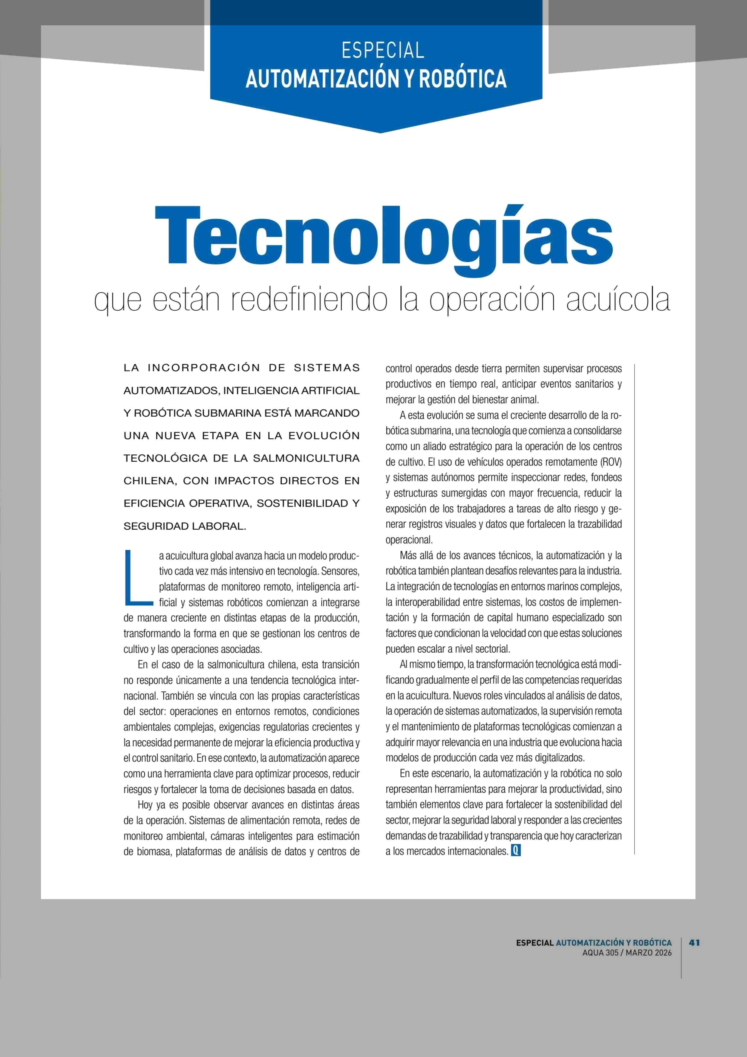 Tecnologías que están redefiniendo la operación acuícola 12-03-2026 Revista Aqua |