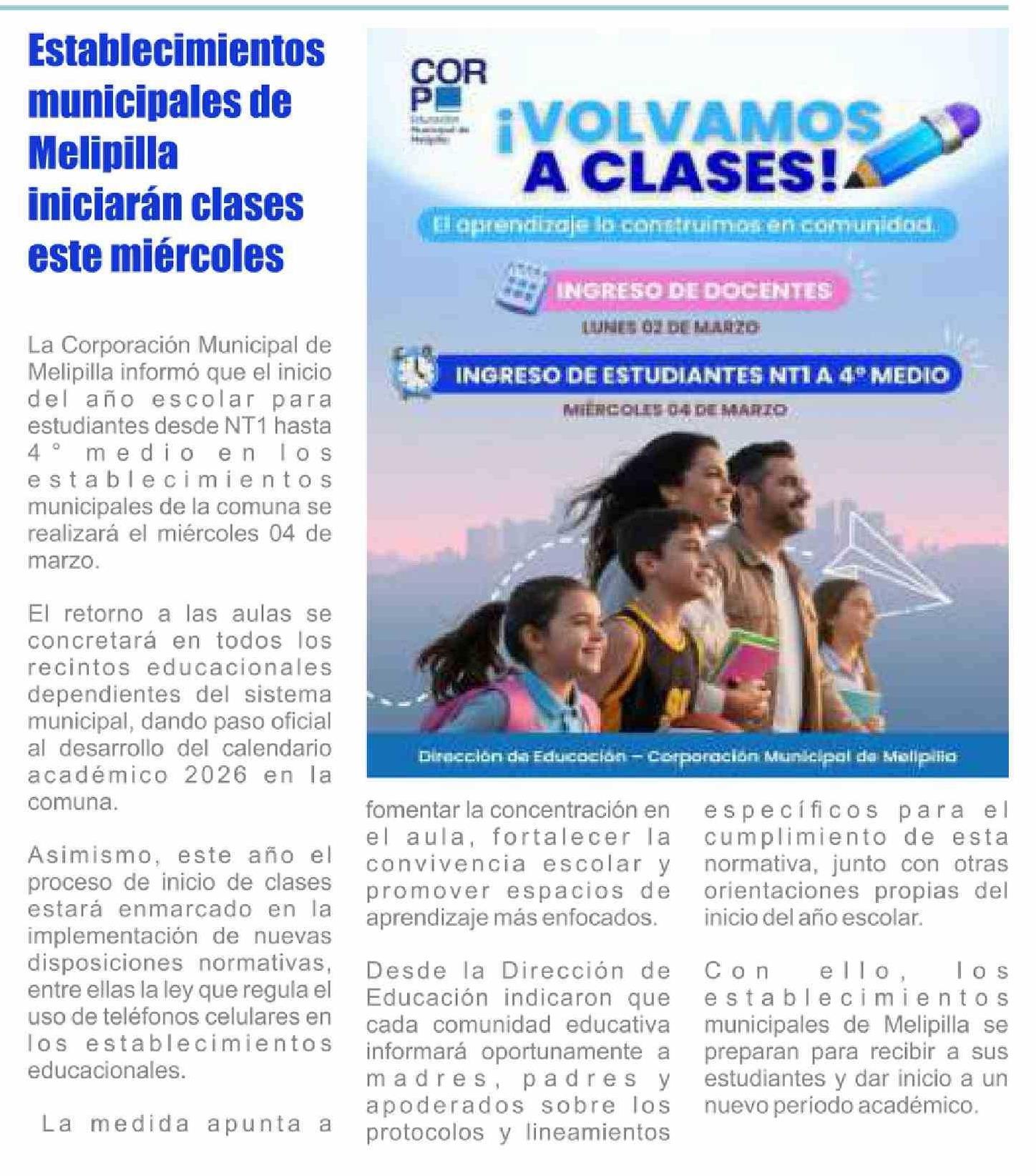 Título: El retorno a las aulas se concretará en todos los recintos educacionales dependientes del sistema municipal, dando paso oficial al desarrollo del calendario académico 2026 en la comuna.