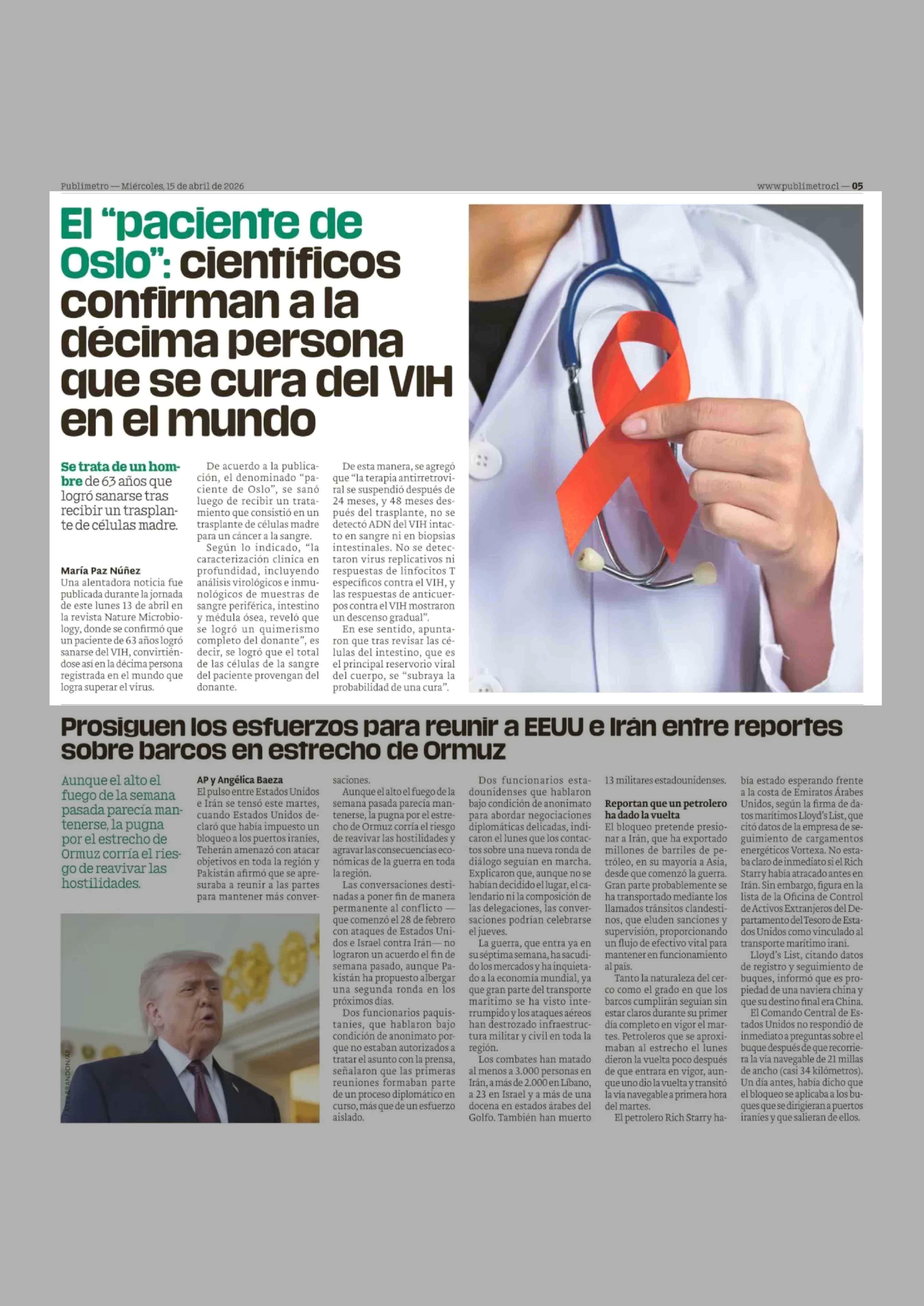 Título: El "paciente de Oslo": científicos confirman a la decima persona que se cura del VIH en el mundo