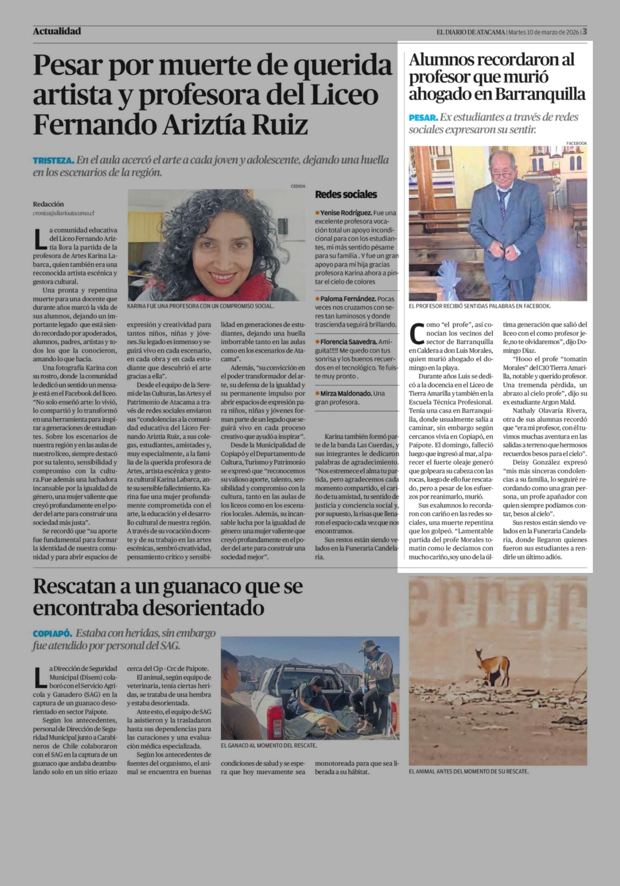 Alumnos recordaron al profesor que murió ahogado en Barranquilla 10-03-2026 El Diario de Atacama |
