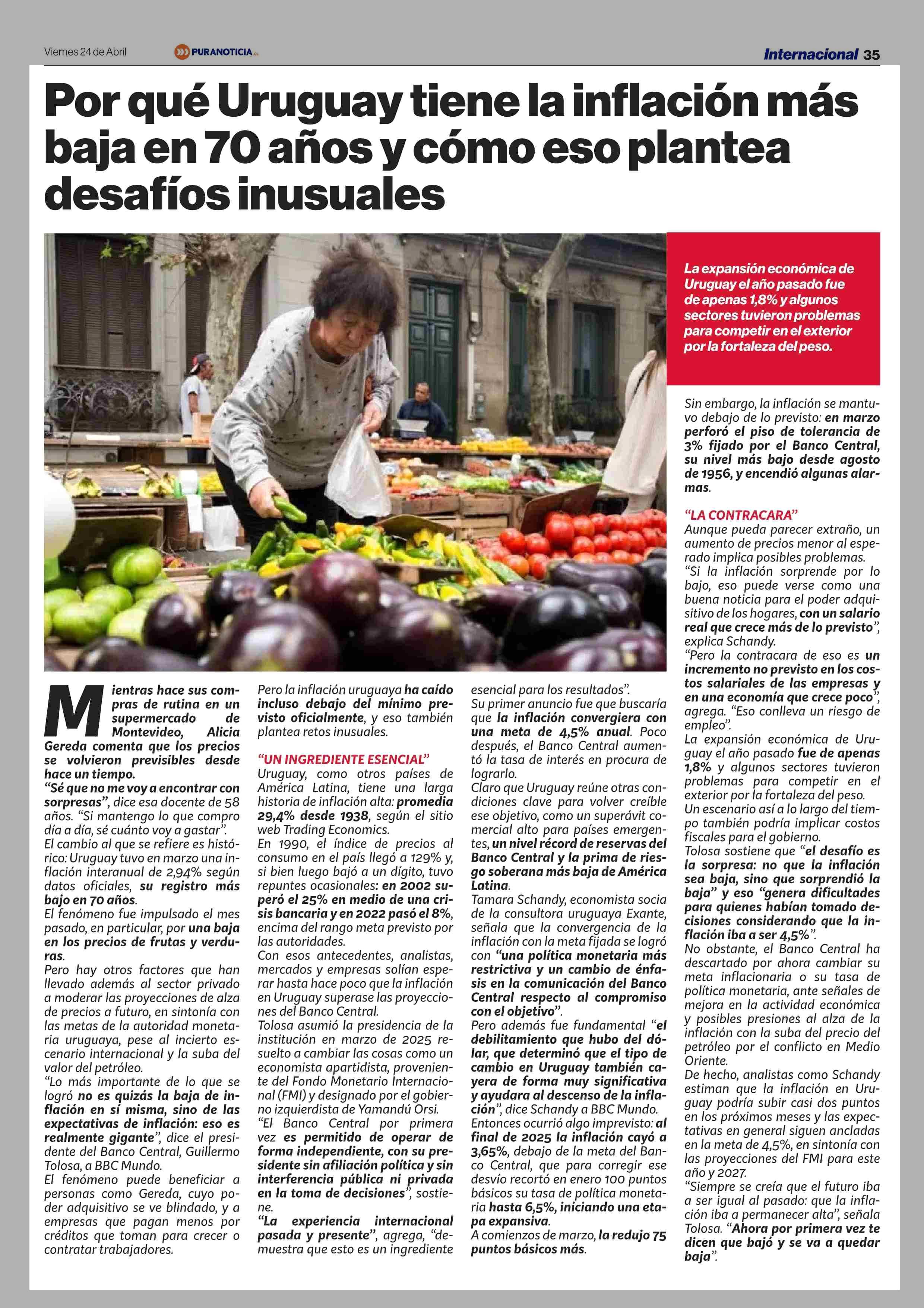 Título: Por qué Uruguay tiene la inflación más baja en 70 años y cómo eso plantea desafíos inusuales