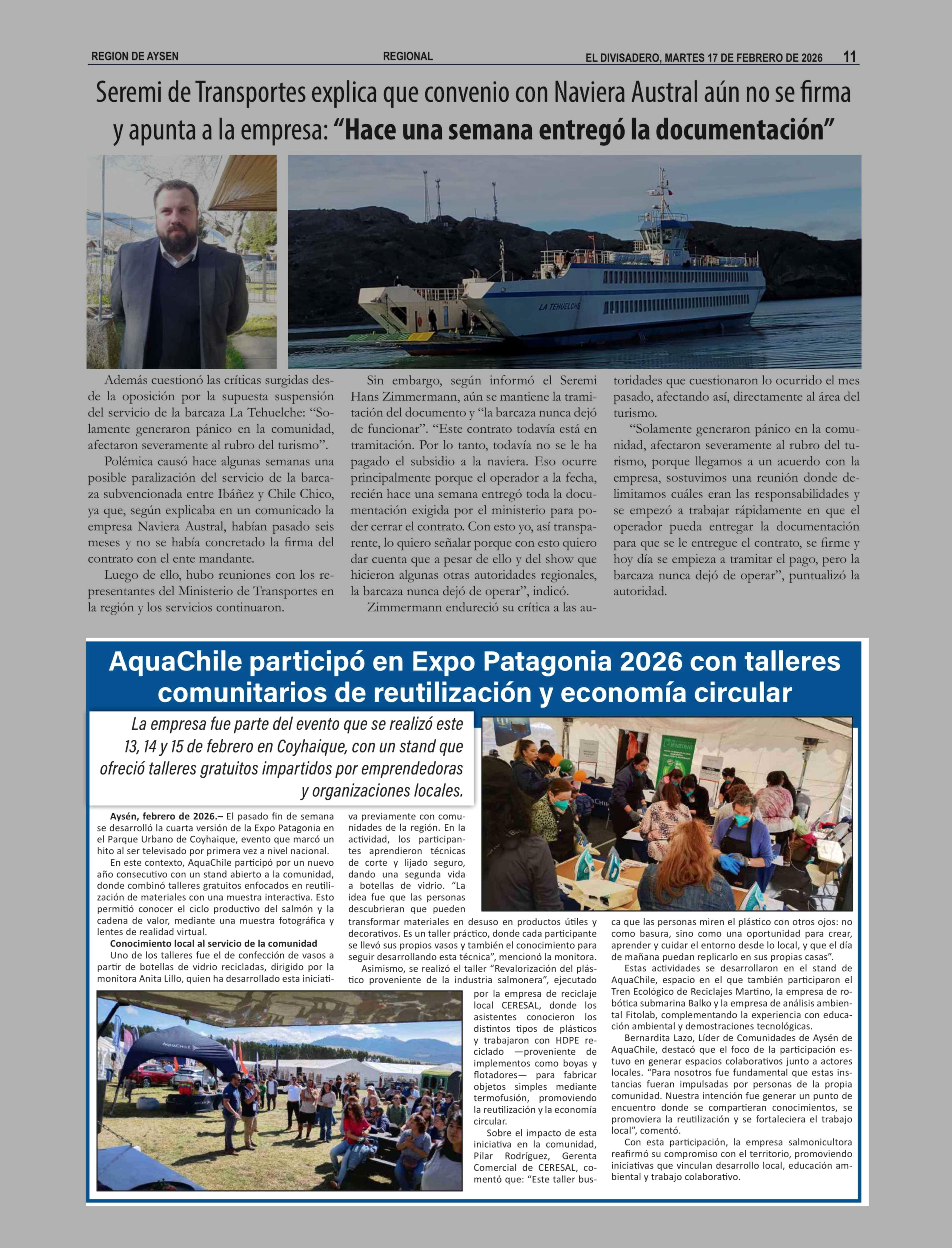 | Fecha: | 17-02-2026 | Sector: | Noticia general | Región: | Región Aysén del General Carlos Ibáñez del Campo |