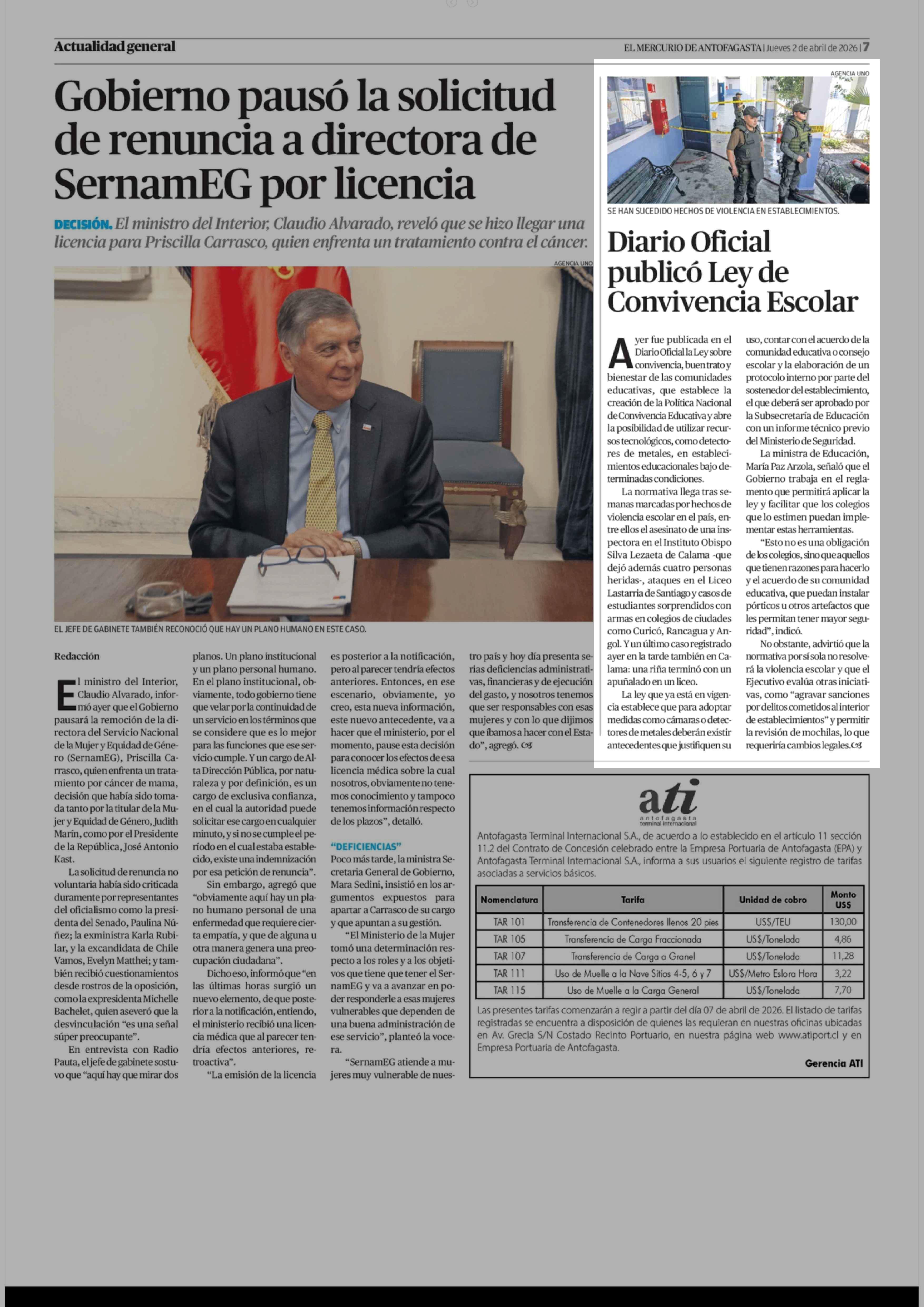 Diario Oficial publicó Ley de Convivencia Escolar 02-04-2026 El Mercurio de Antofagasta |