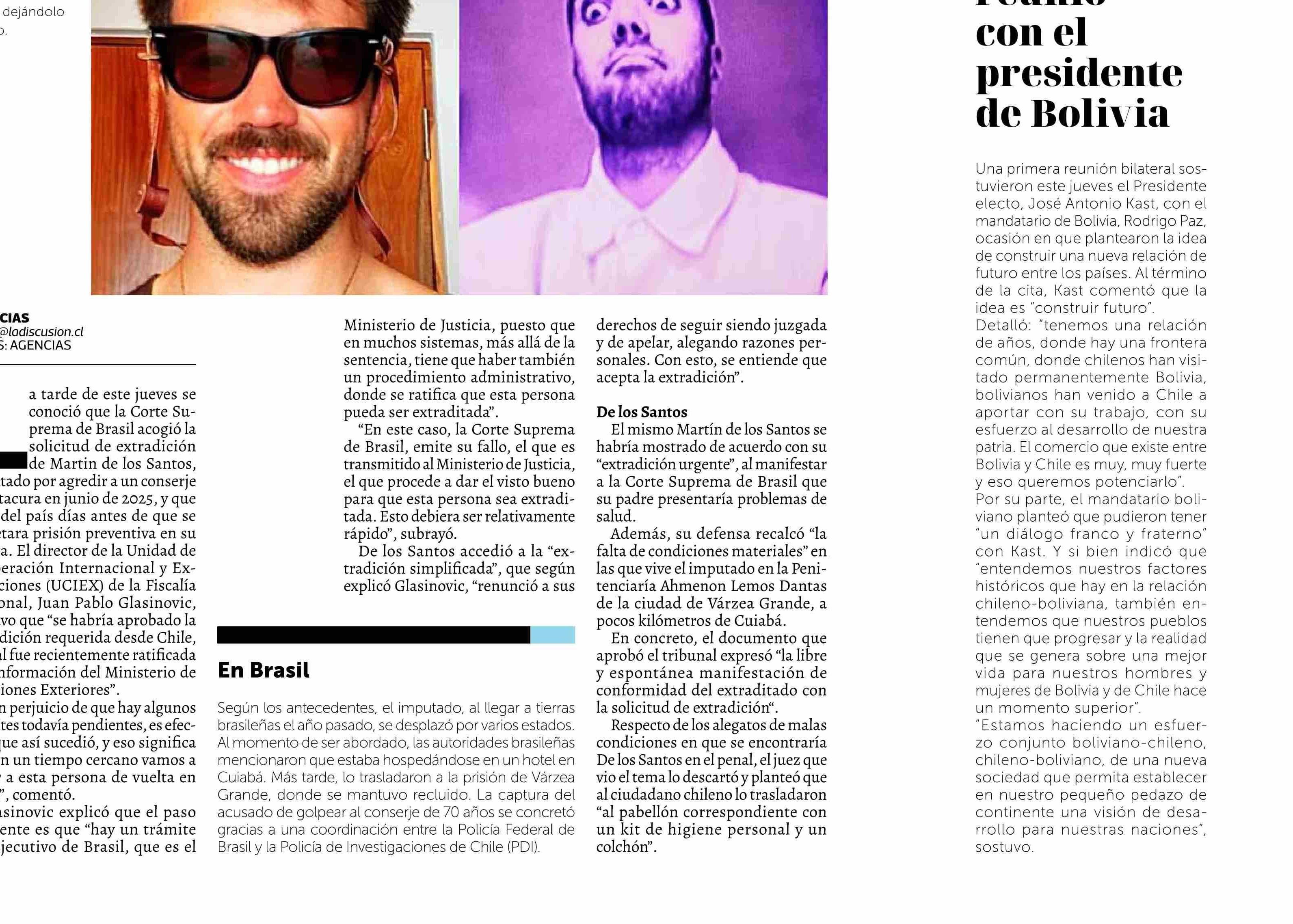 Título: Brasil acoge extradición de Martín de los Santos a Chile