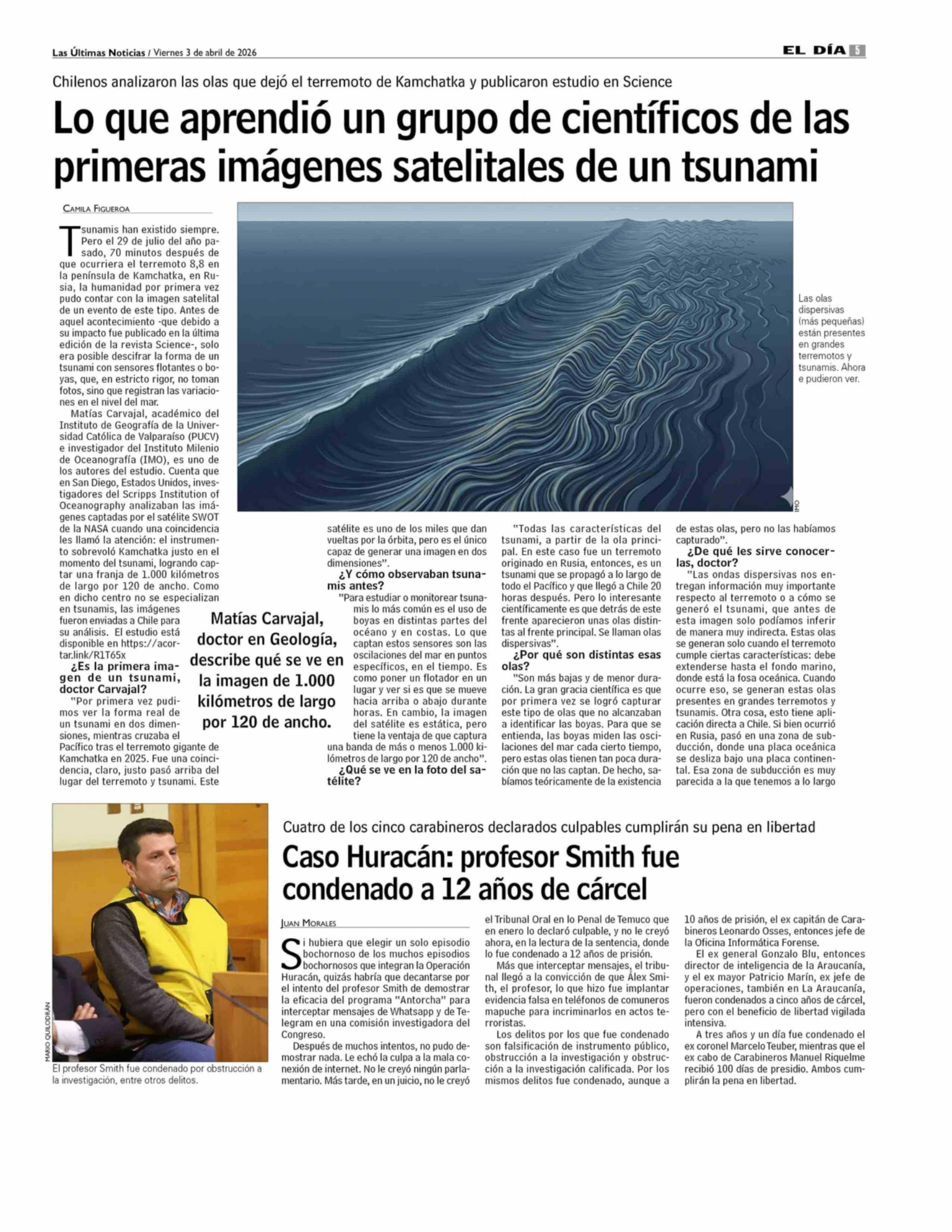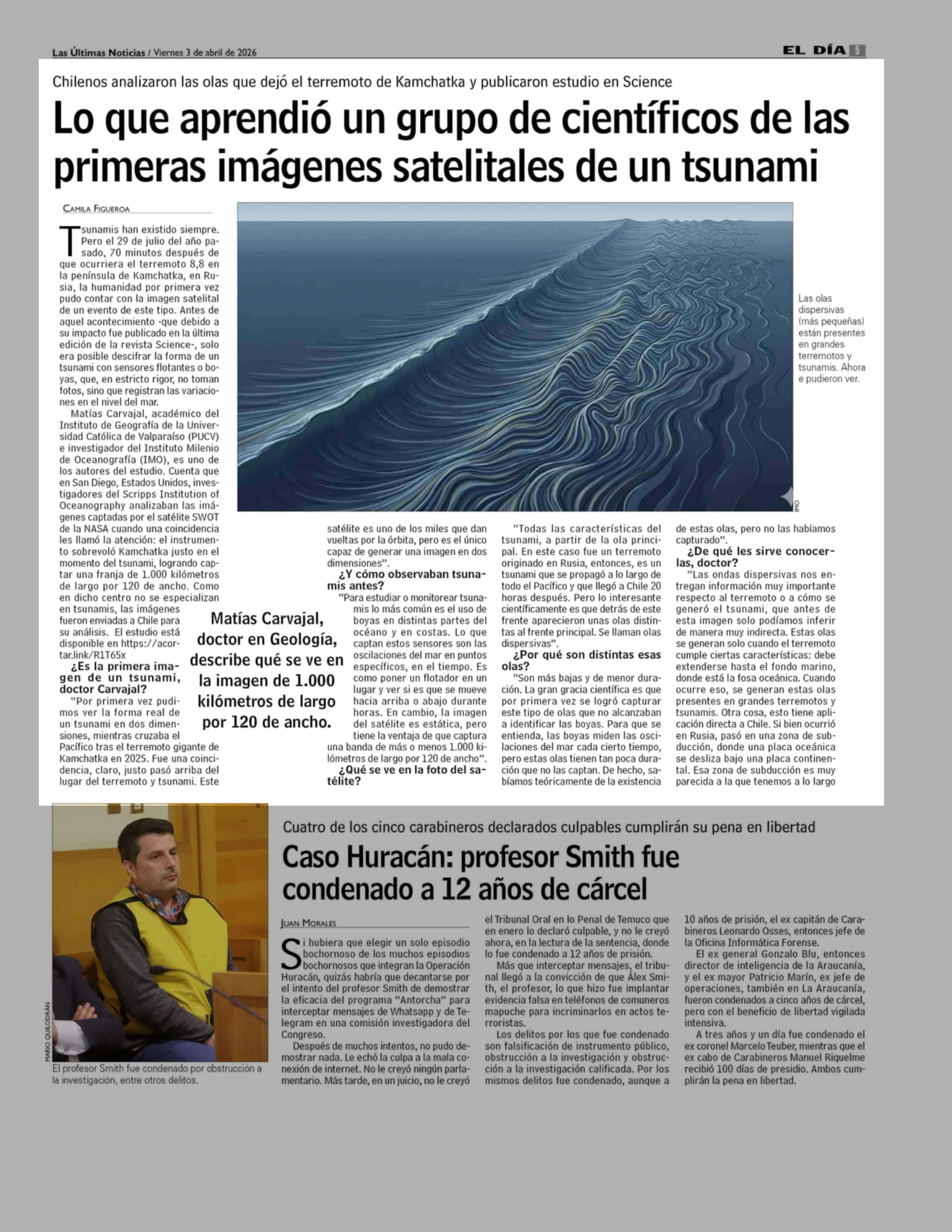 Lo que aprendió un grupo de científicos de las primeras imágenes satelitales de un tsunami 03-04-2026 Las Últimas Noticias |