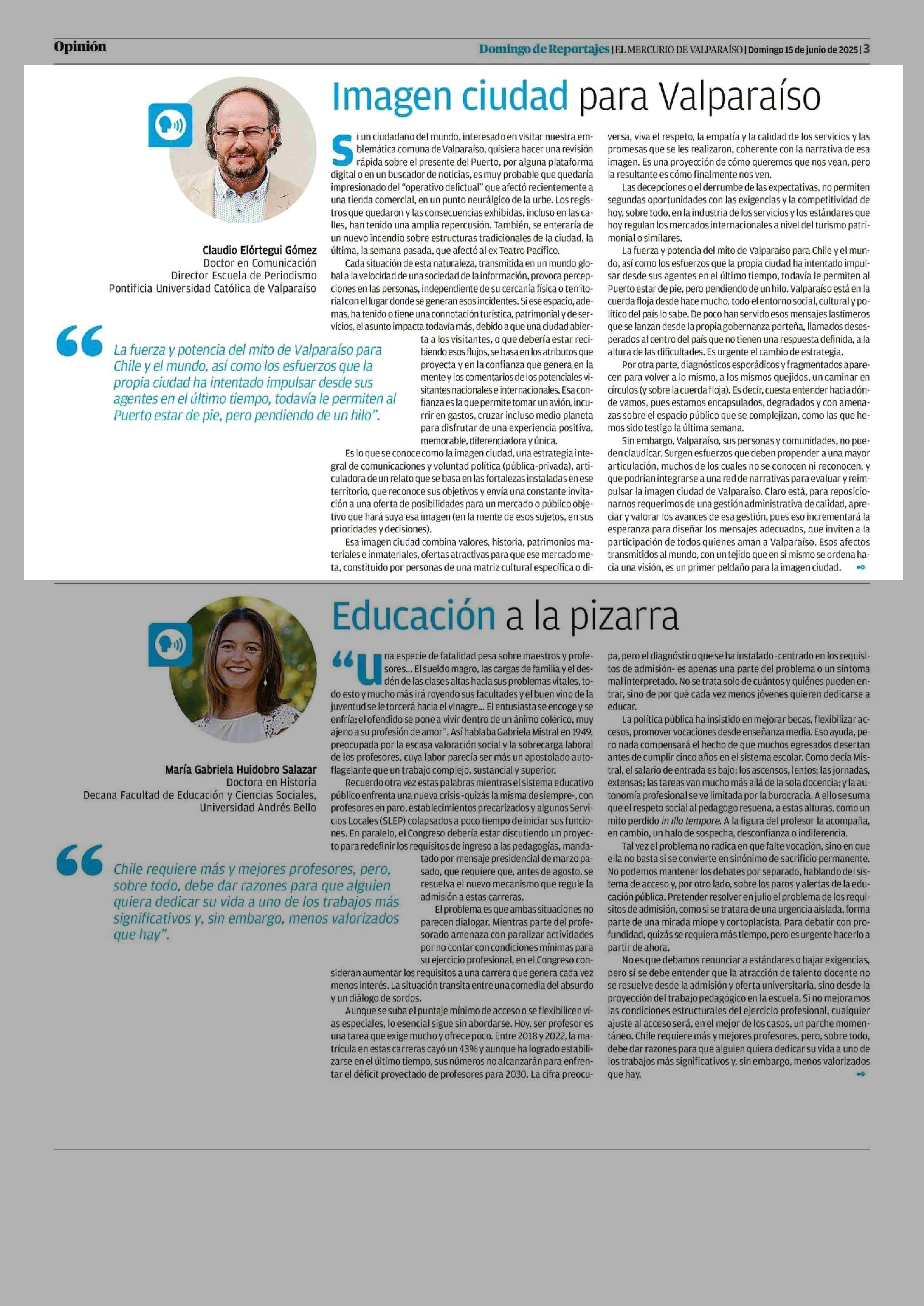 COLUMNAS DE OPINIÓN: Imagen ciudad para Valparaíso 15-06-2025 El Mercurio de Valparaíso |