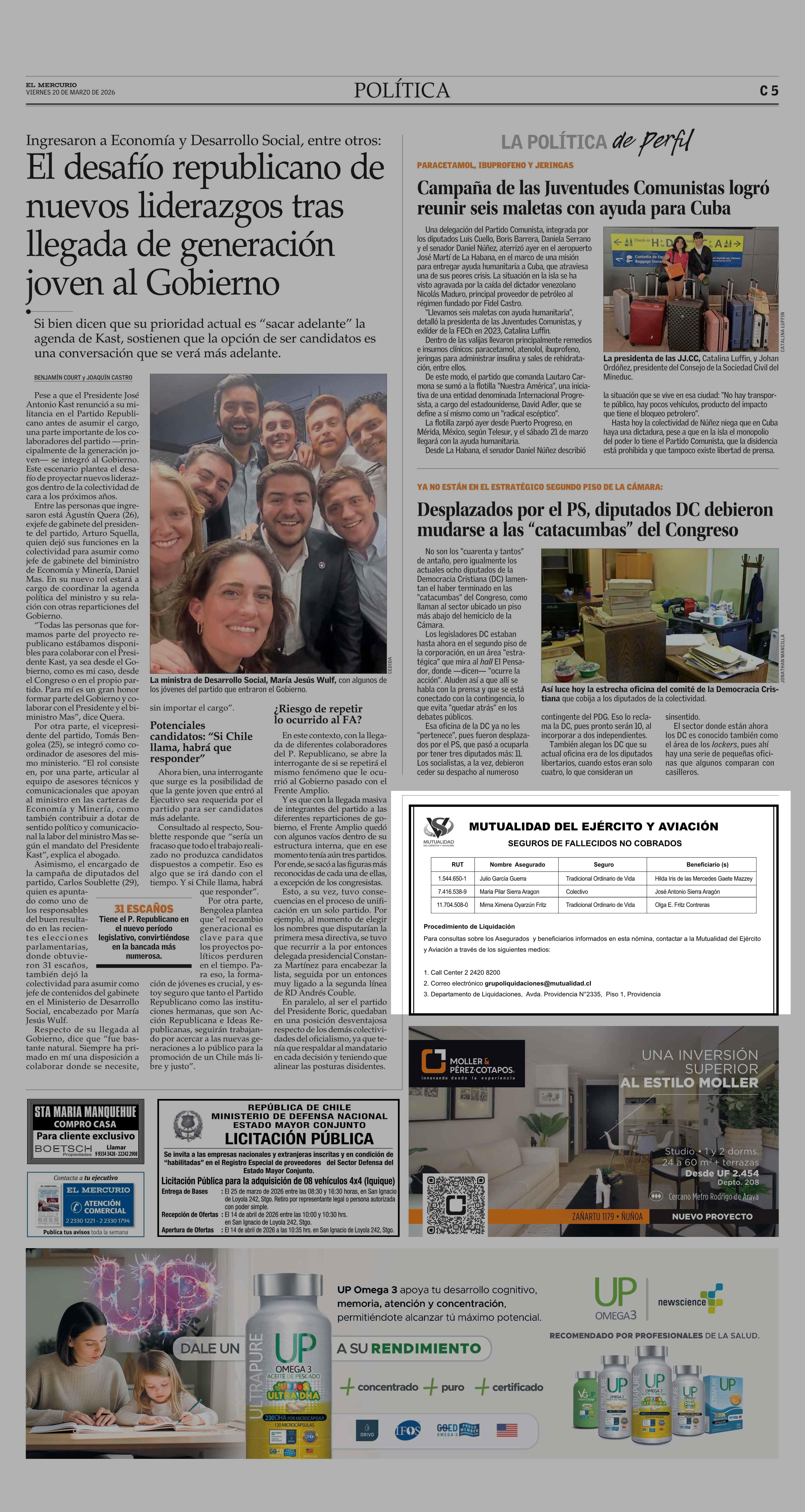 AVISO PUBLICITARIO: MUTUALIDAD DEL EJÉRCITO Y AVIACIÓN SEGUROS DE FALLECIDOS NO COBRADOS 20-03-2026 El Mercurio |