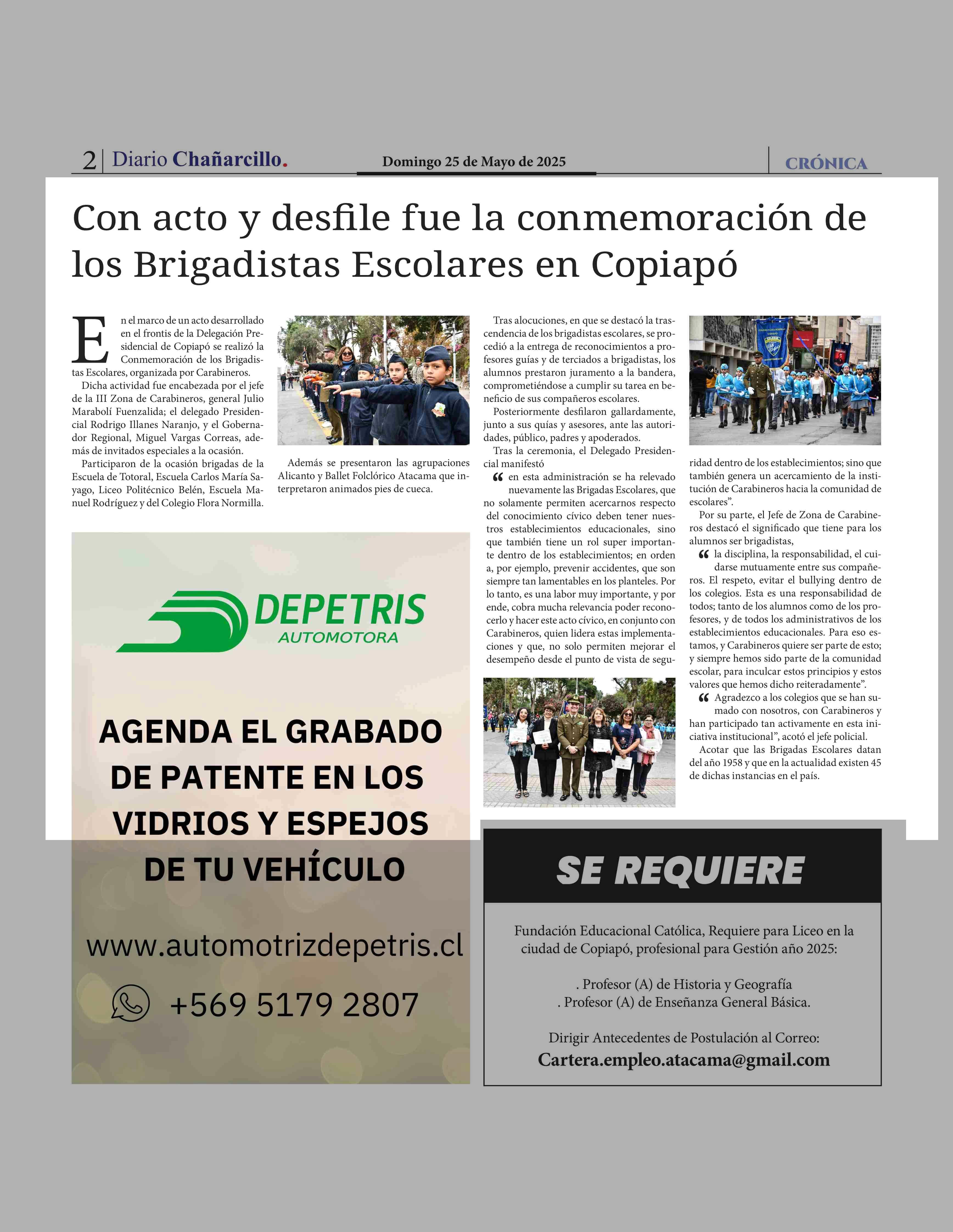 Con acto y desfile fue la conmemoración de los Brigadistas Escolares en Copiapó 25-05-2025 Diario Chañarcillo |