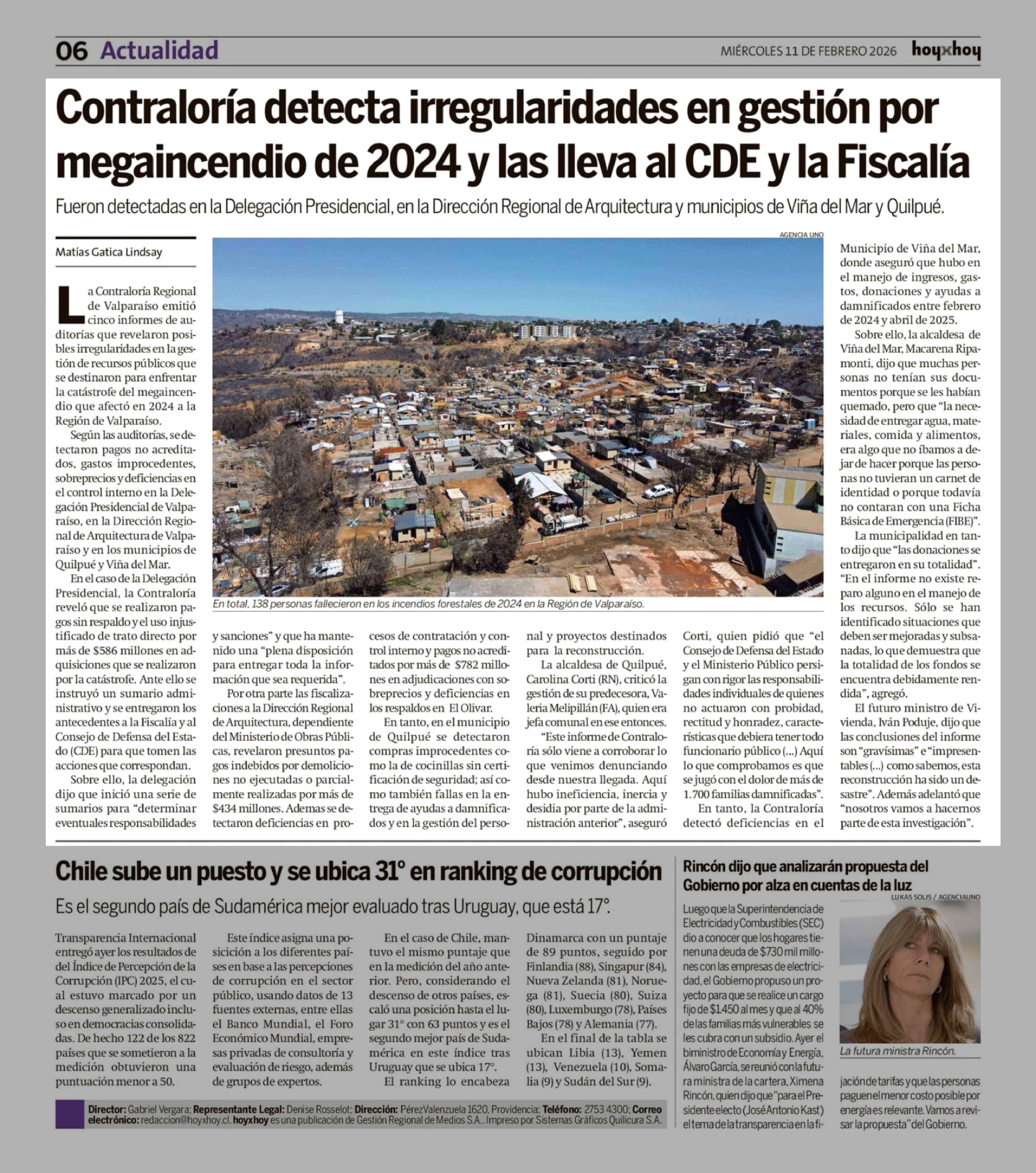 Contraloría detecta irregularidades en gestión por megaincendio de 2024 y las lleva al CDE y la Fiscalía 11-02-2026 Hoy x Hoy Concepción |
