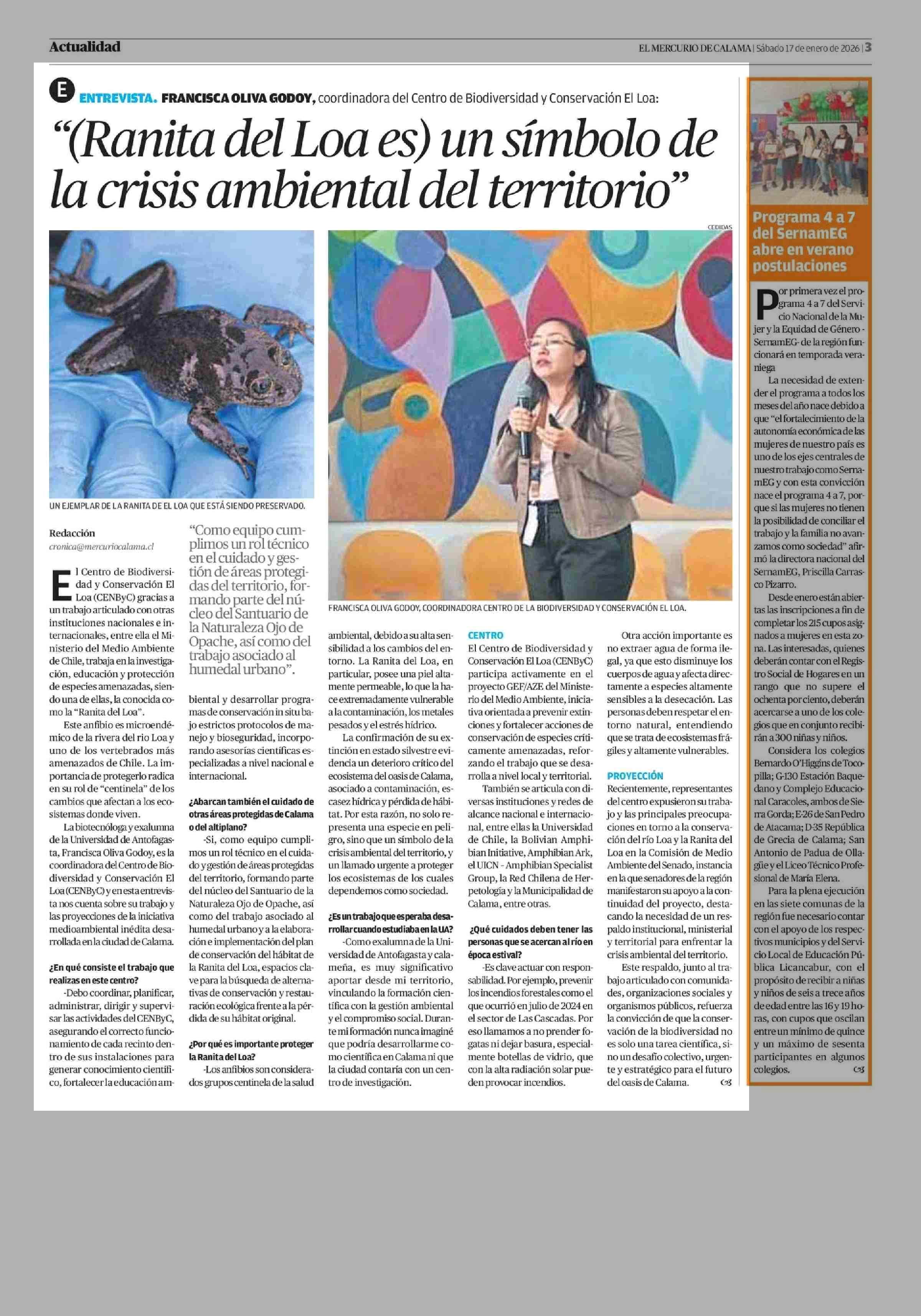 Título: "(Ranita del Loa es) un símbolo de la crisis ambiental del territorio"