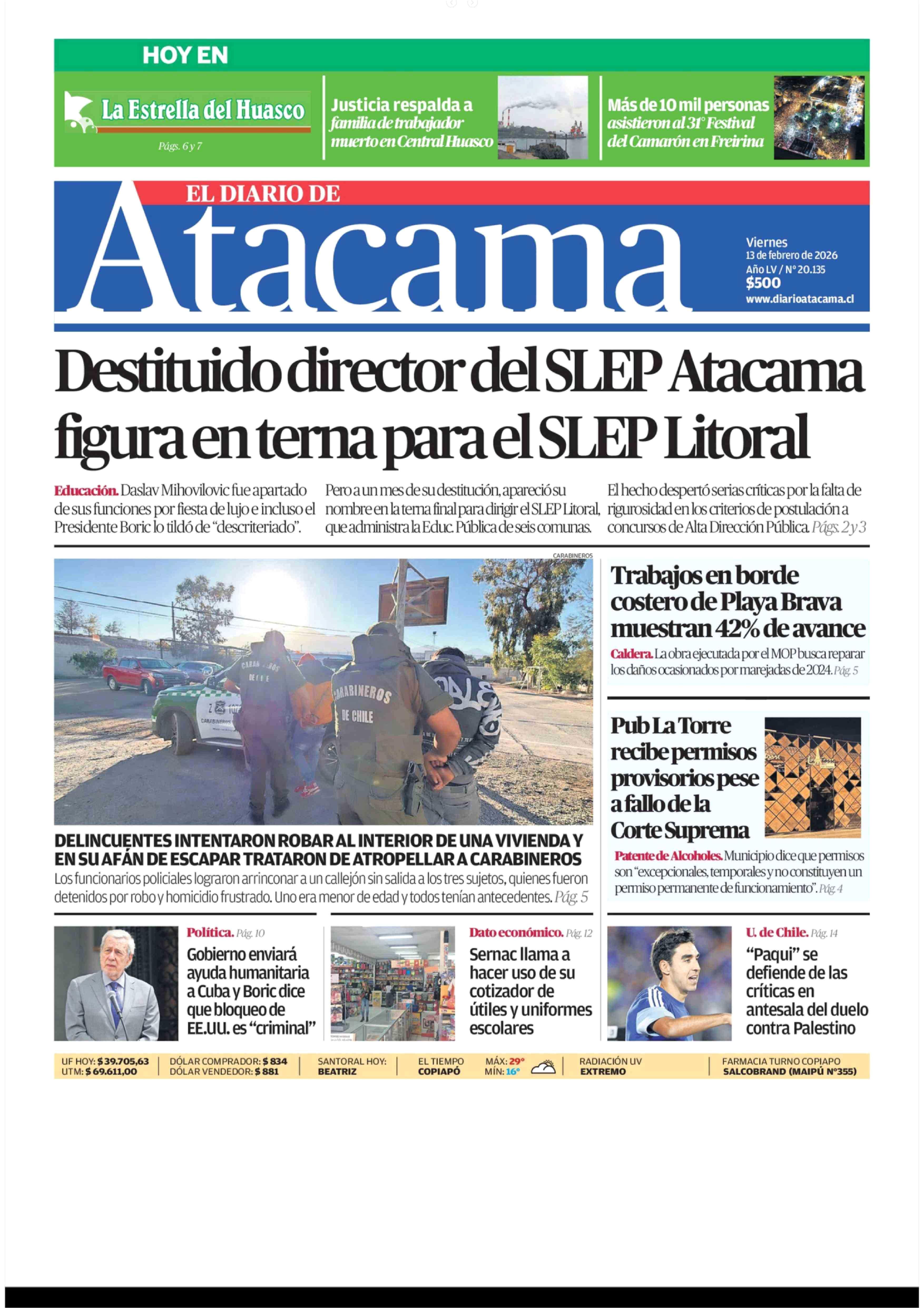 | Fecha: | 13-02-2026 | Sector: | Portada | Región: | Región de Atacama |
