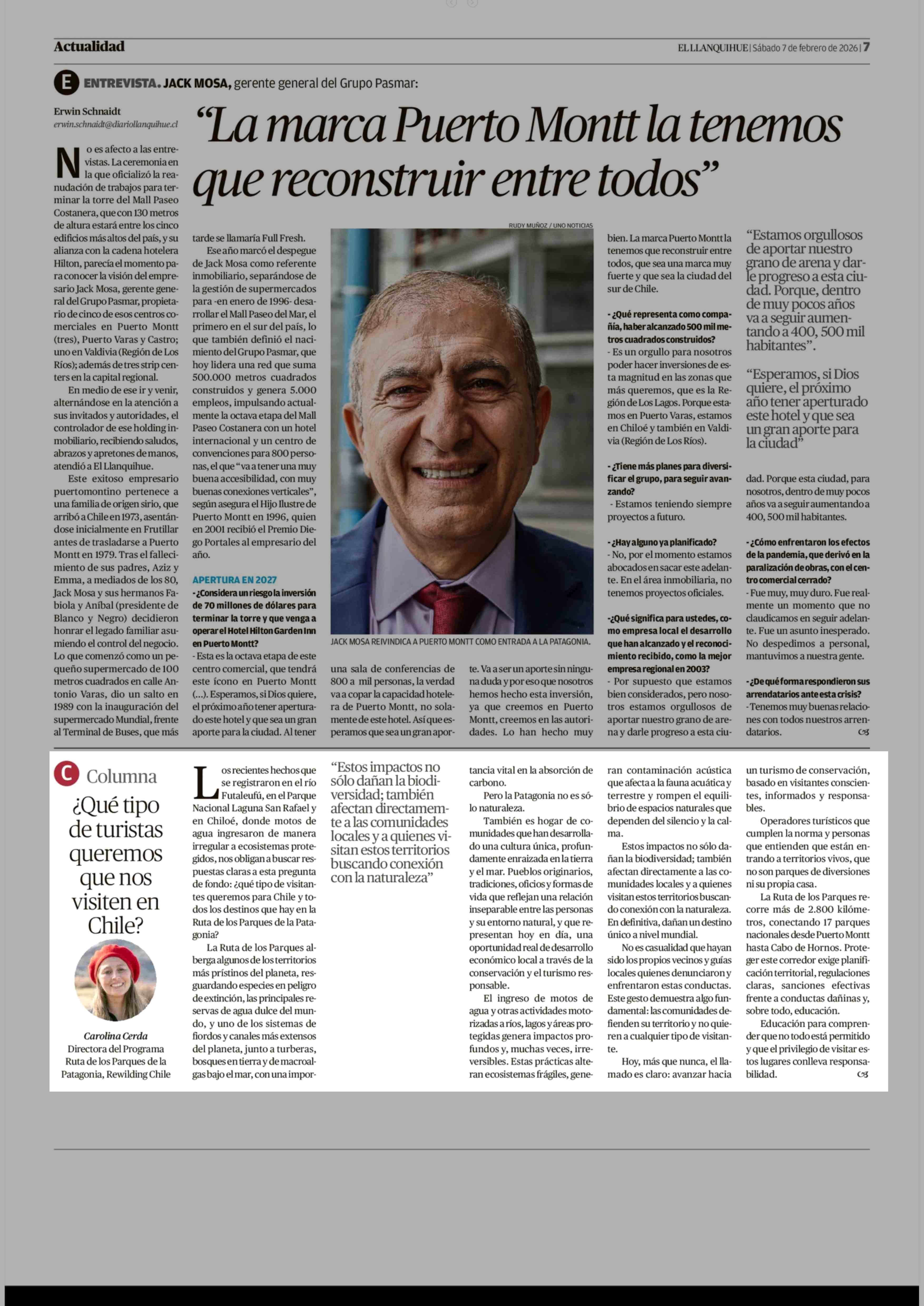 Columnas de Opinión: ¿Qué tipo de turistas queremos que nos visiten en Chile? 07-02-2026 El Llanquihue |