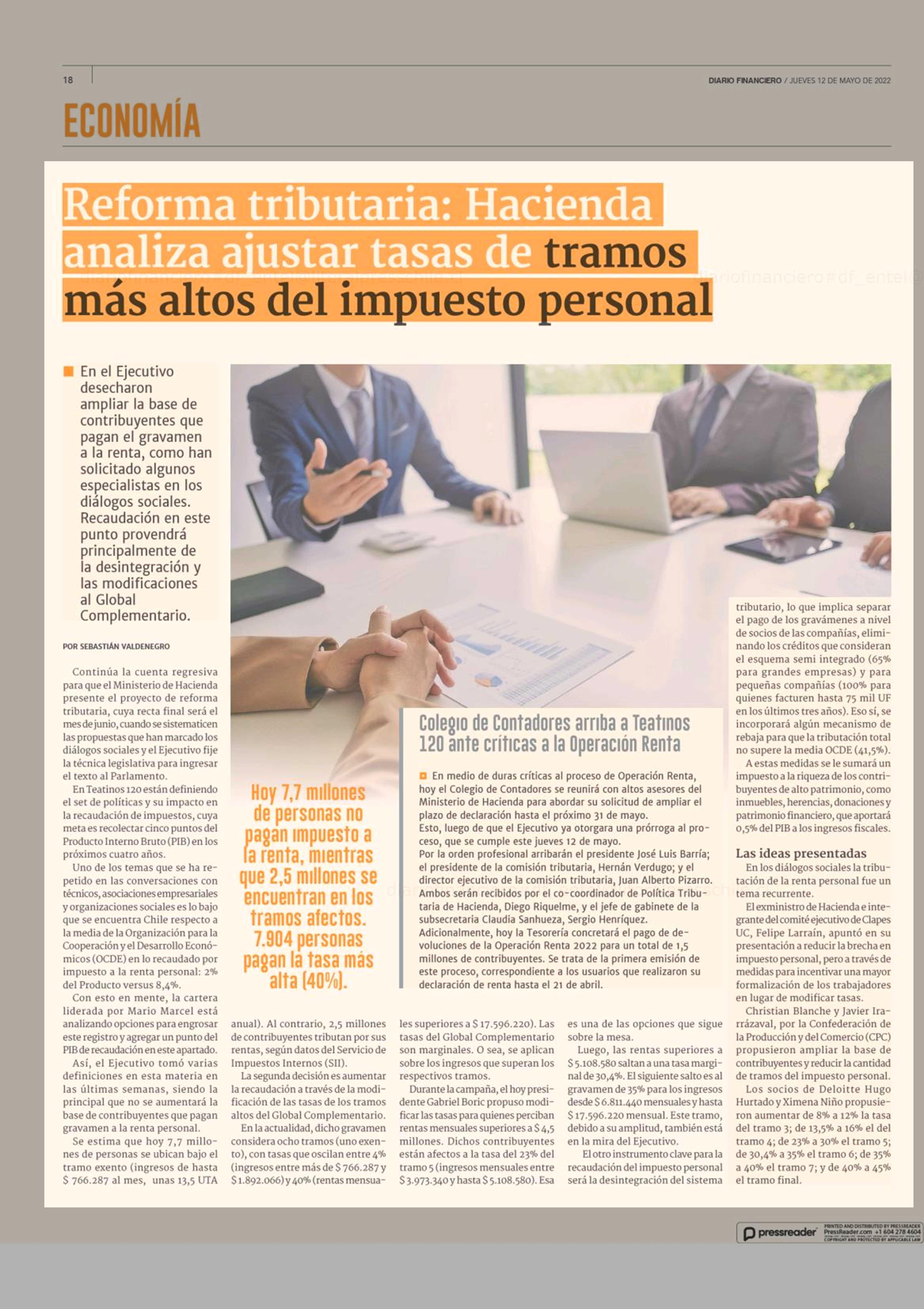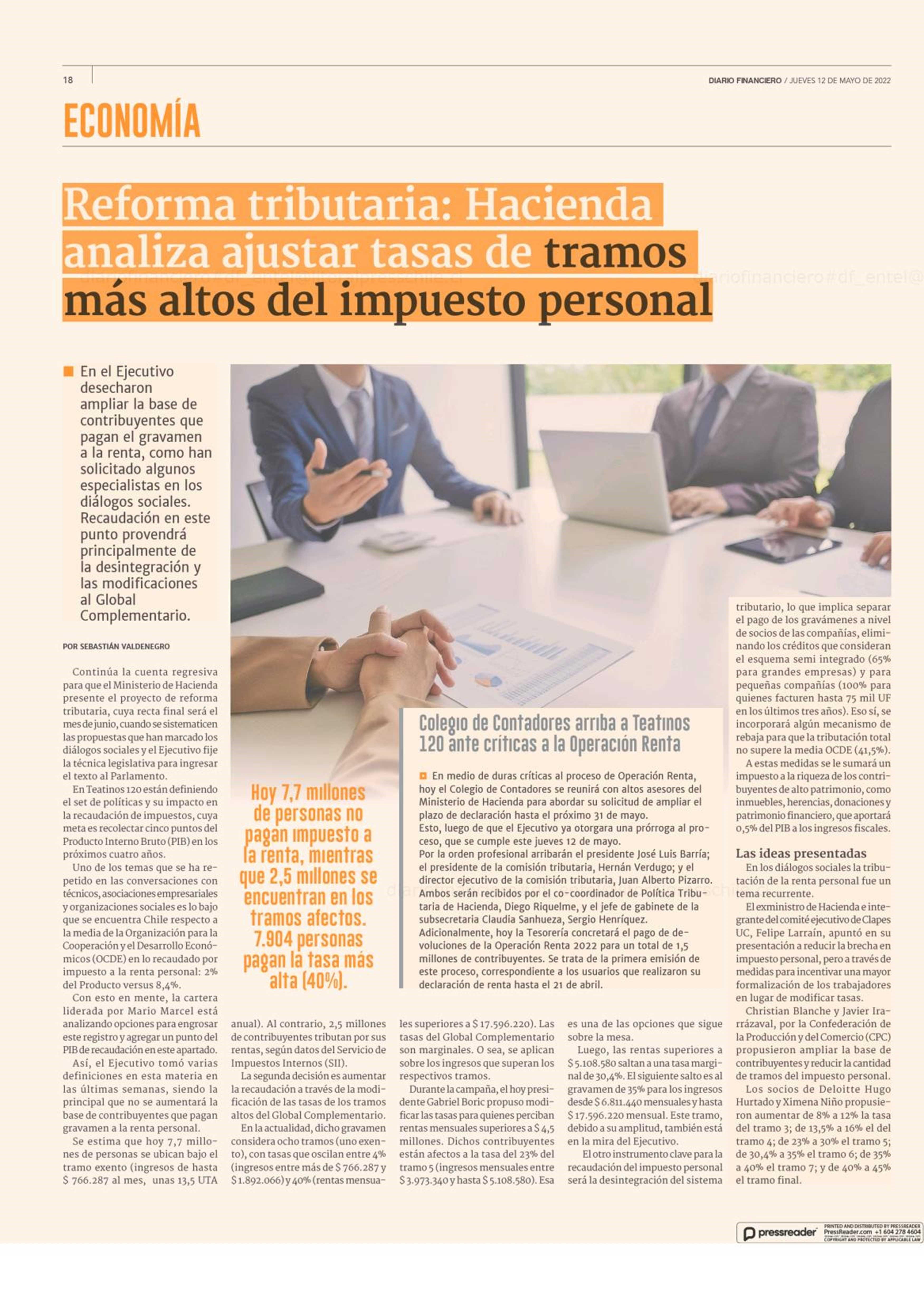 Título: Reforma tributaria: Hacienda analiza ajustar tasas de tramos más altos del impuesto personal