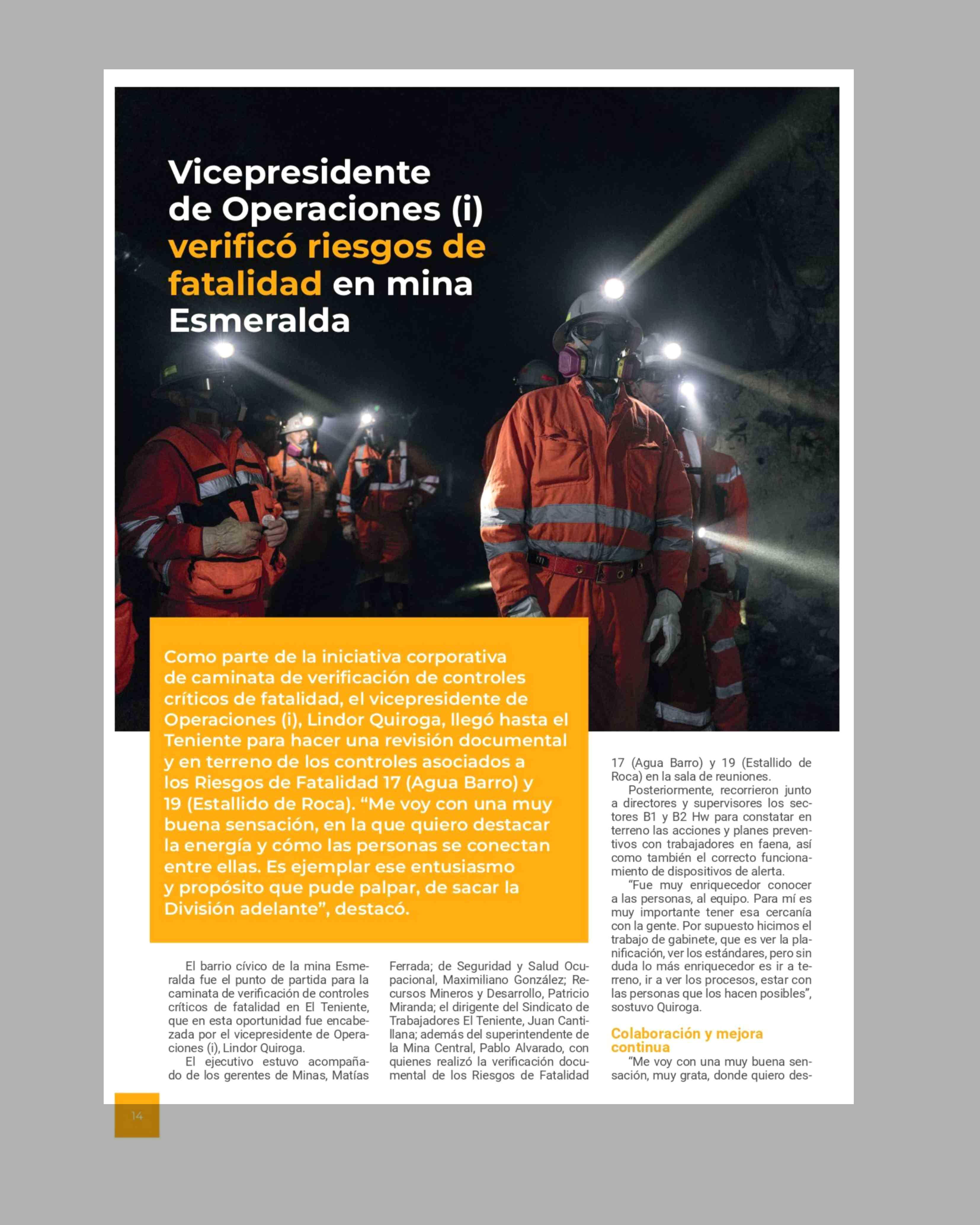 Vicepresidente de Operaciones (i) verificó riesgos de fatalidad en mina Esmeralda 22-03-2026 El Rancagüino |