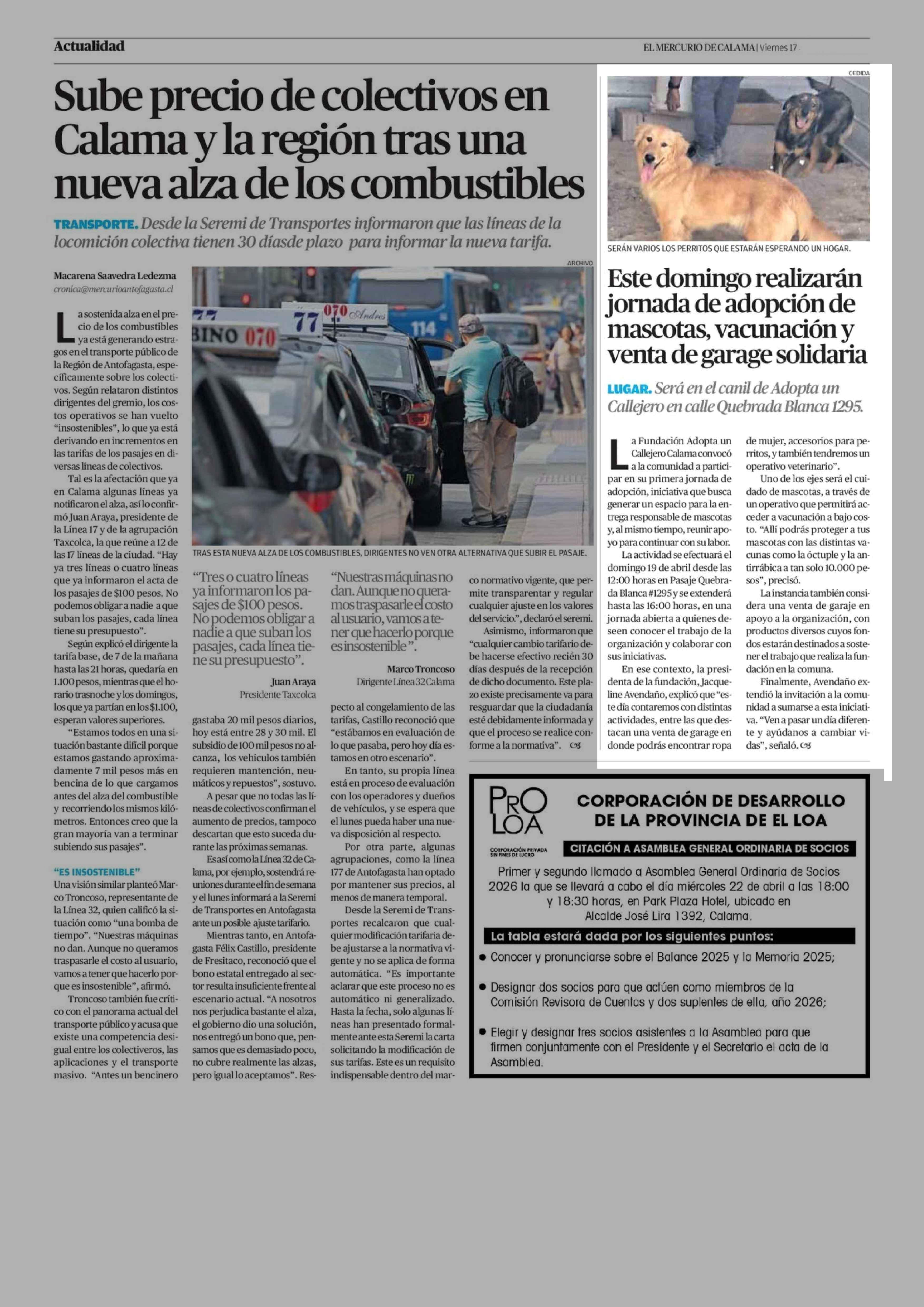 Fecha: 17-04-2026 Sector: Noticia general Región: Región de Antofagasta