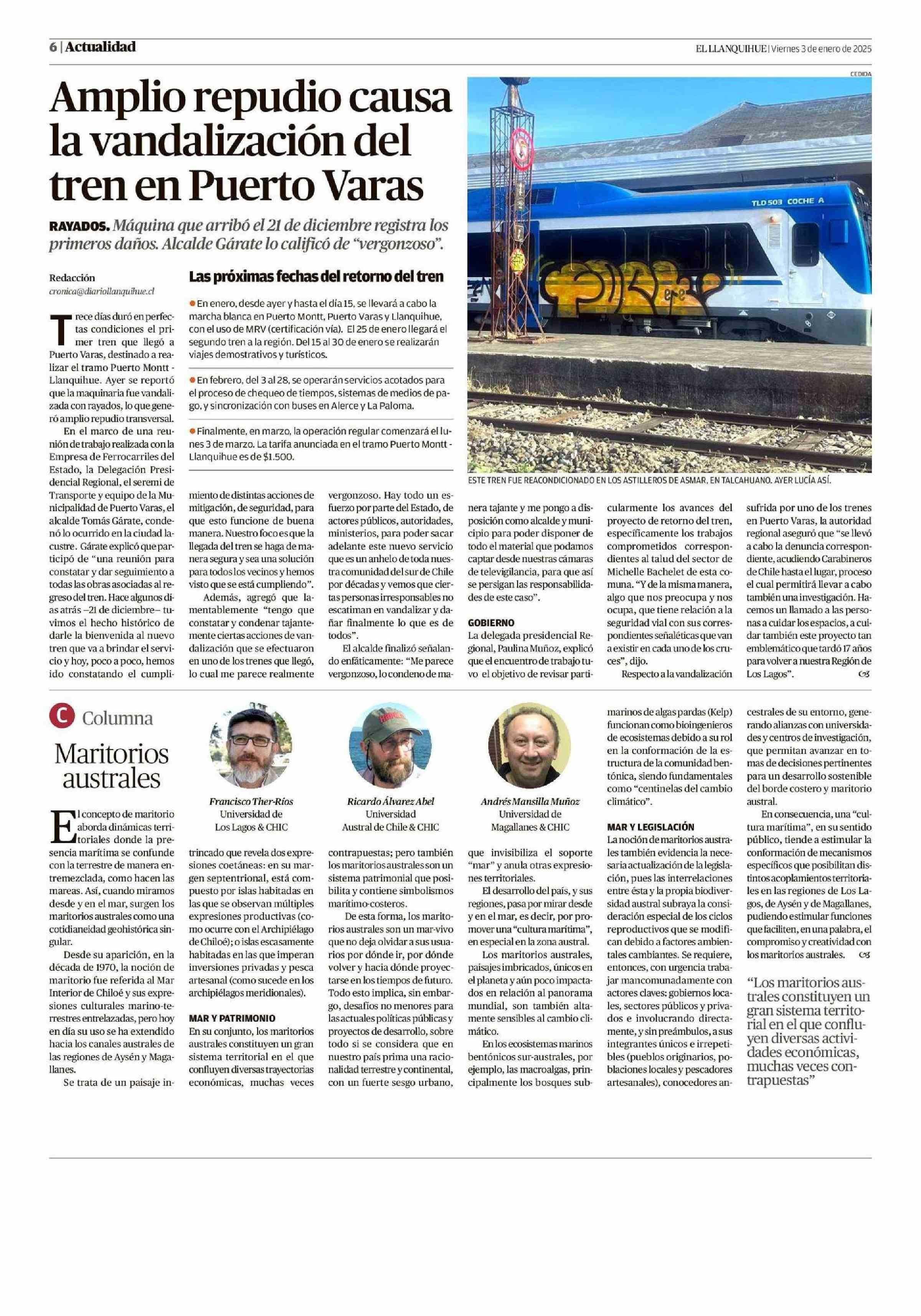 Amplio repudio causa la vandalización del tren en Puerto Varas 03-01-2025 El Llanquihue |