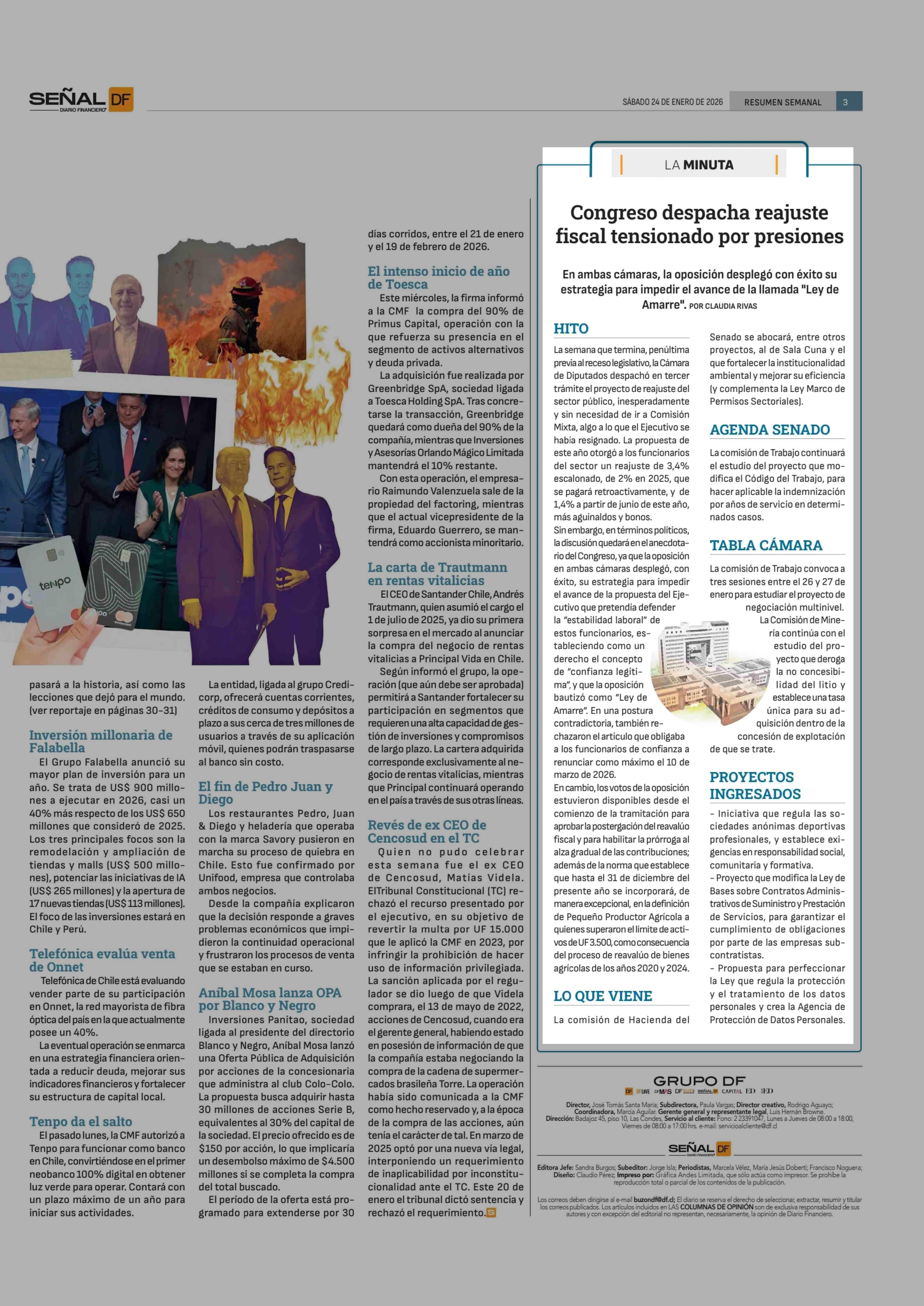 Congreso despacha reajuste fiscal tensionado por presiones 24-01-2026 Diario Financiero |