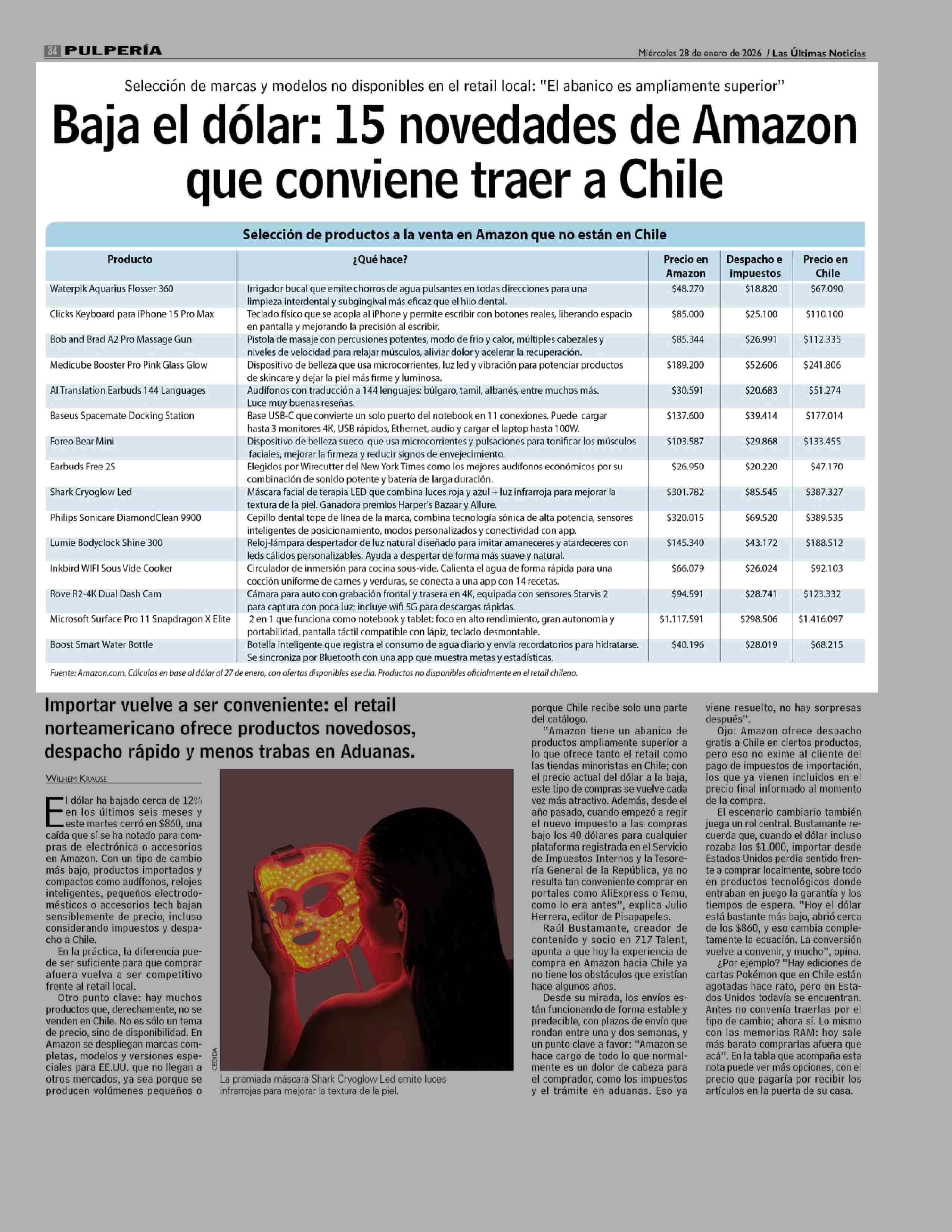 Baja el dólar: 15 novedades de Amazon que conviene traer a Chile 28-01-2026 Las Últimas Noticias |