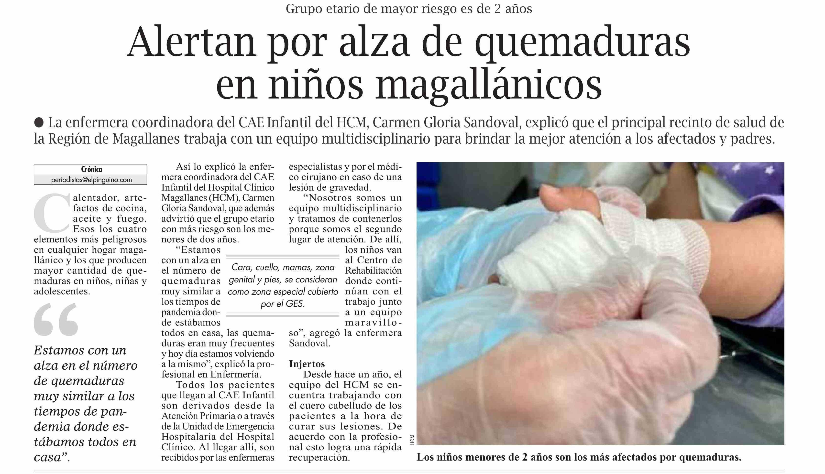 Alertan por alza de quemaduras en niños magallánicos 01-06-2025 El Pingüino |