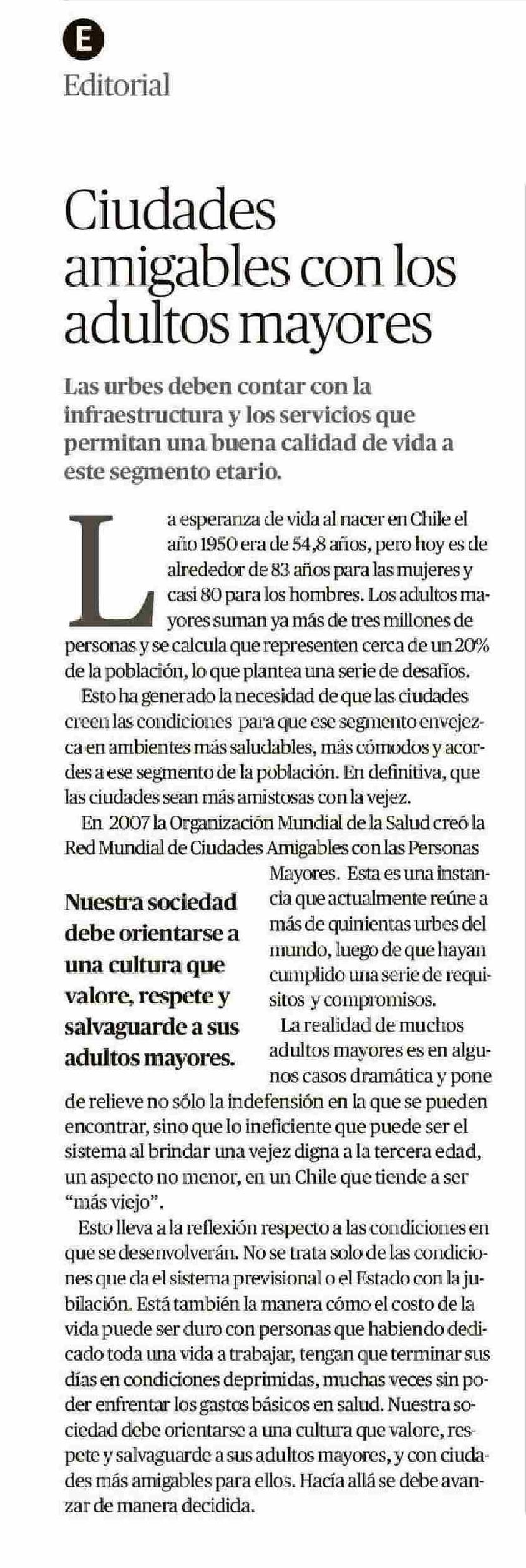 EDITORIAL: Ciudades amigables con los adultos mayores 05-06-2025 Crónica de Chillán |