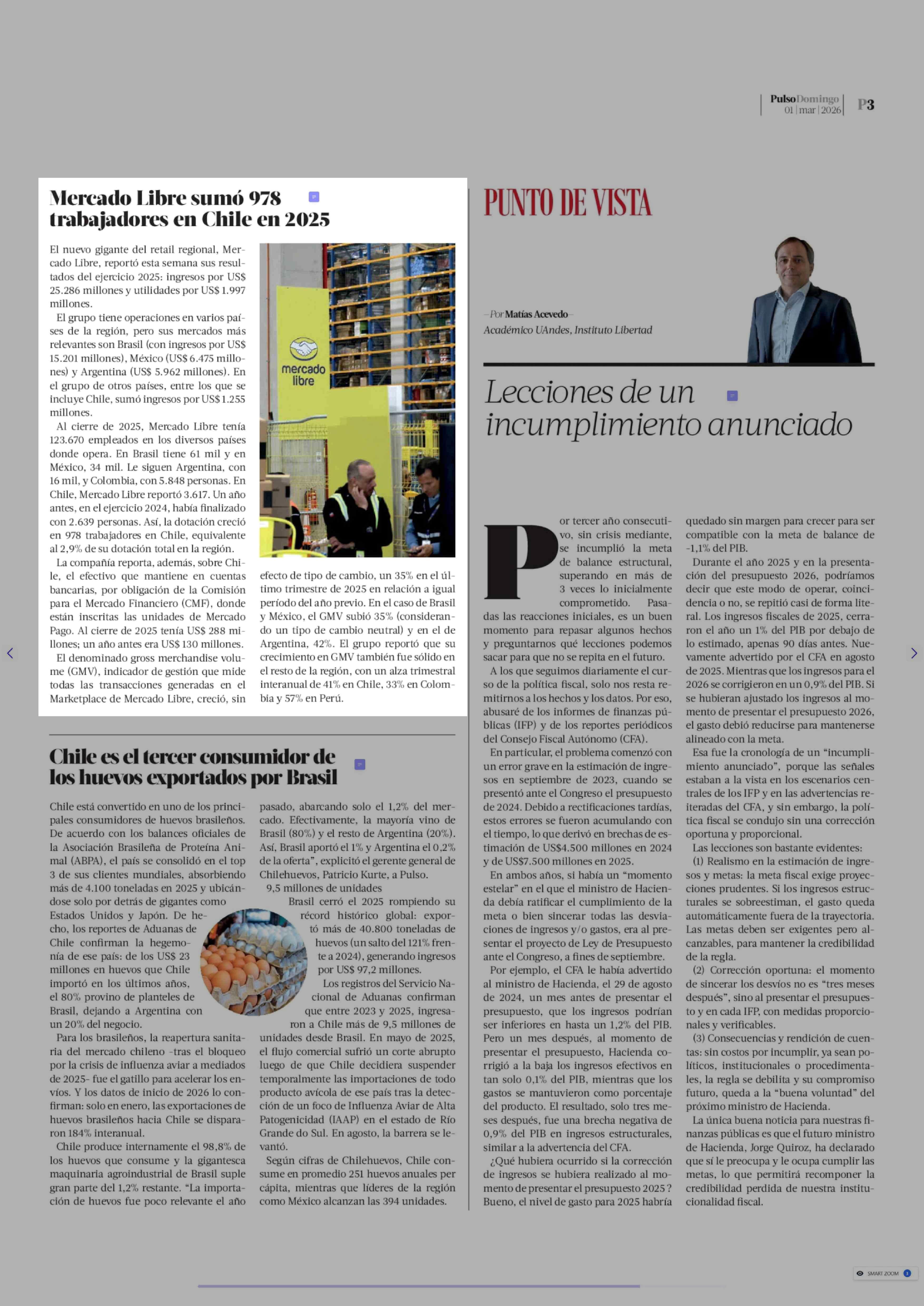 Mercado Libre sumó 978 trabajadores en Chile en 2025 01-03-2026 La Tercera |