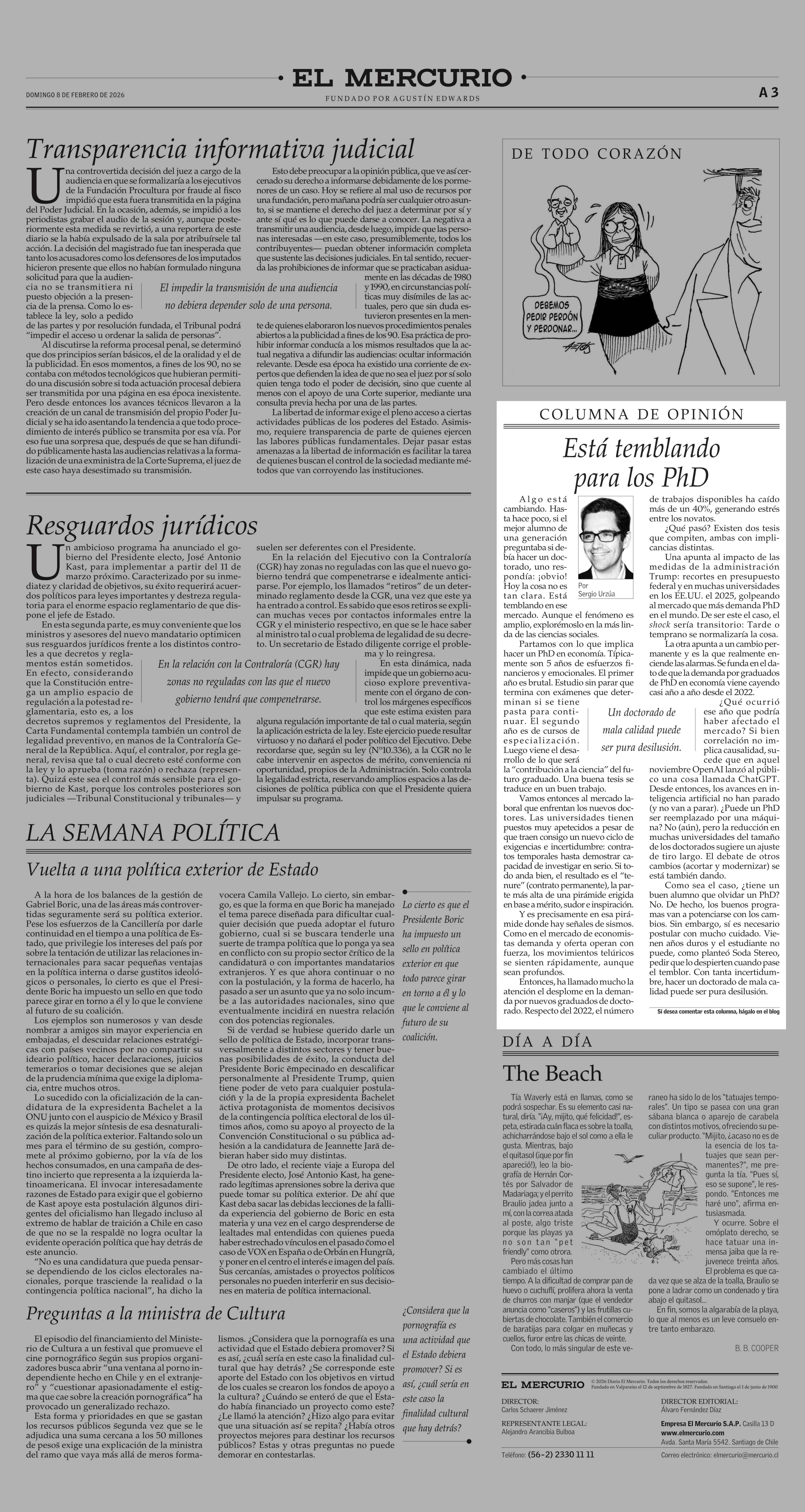 Columnas de Opinión: Está temblando para los PhD 08-02-2026 El Mercurio |