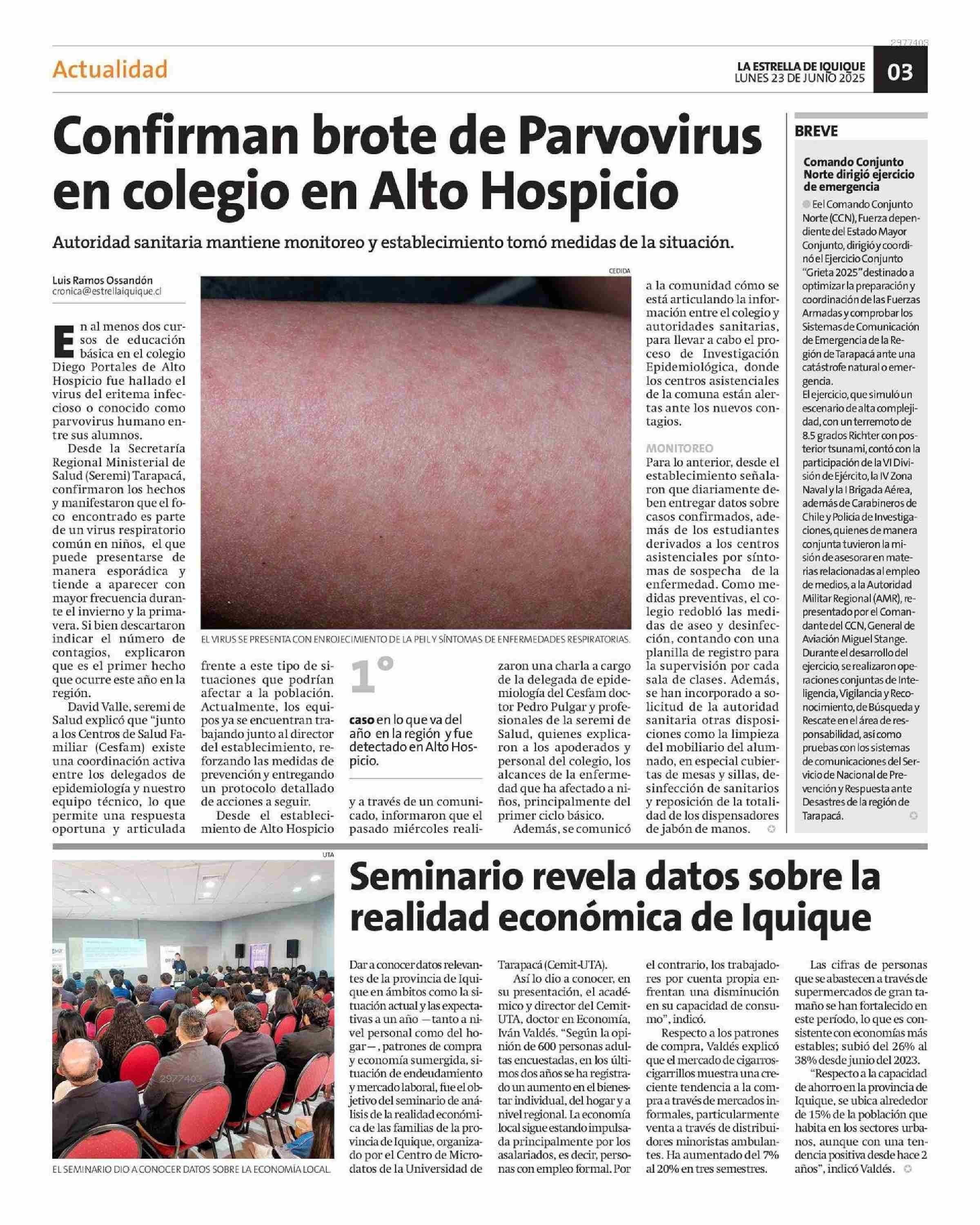Confirman brote de Parvovirus en colegio en Alto Hospicio 23-06-2025 La Estrella de Iquique |