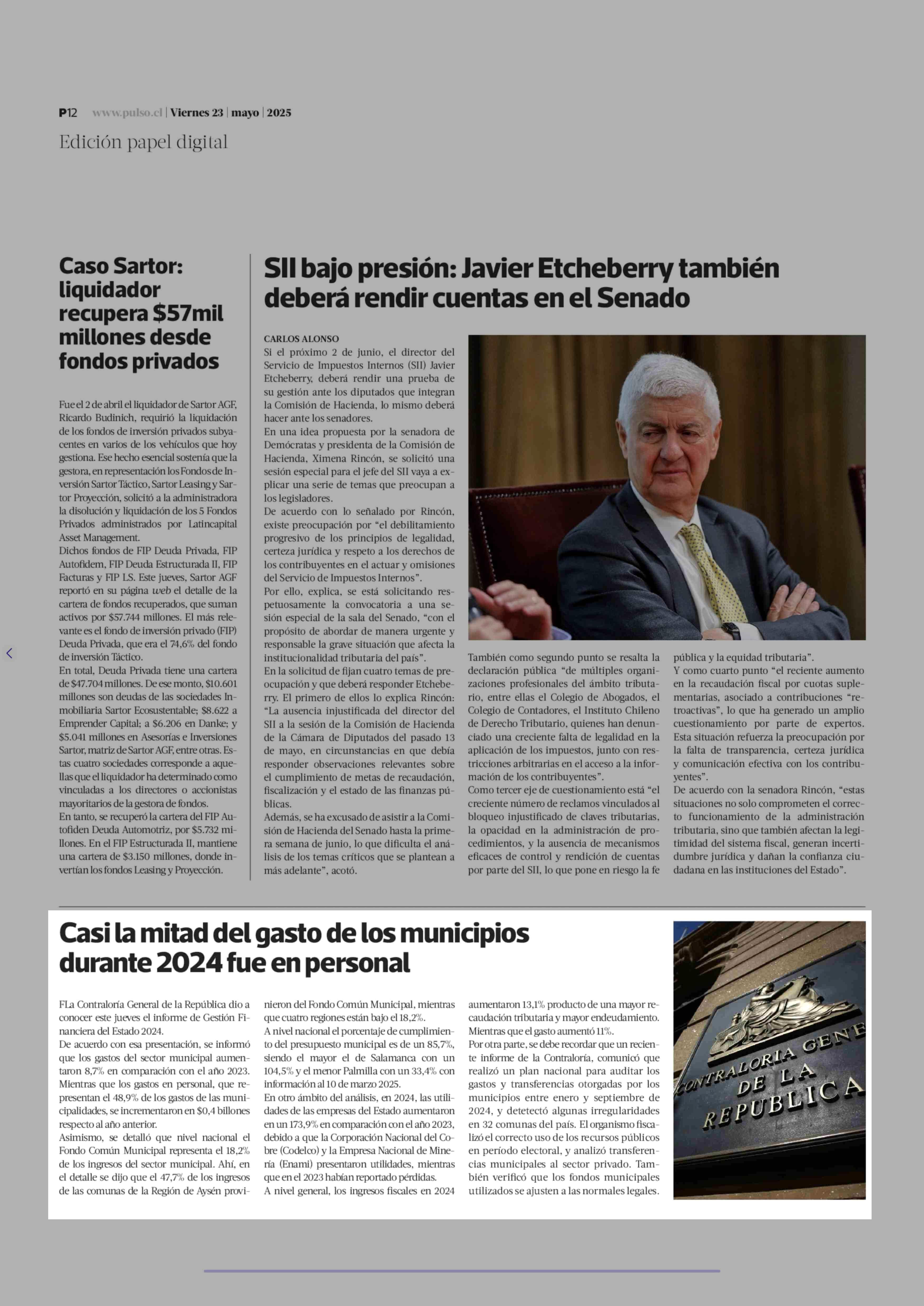 Casi la mitad del gasto de los municipios durante 2024 fue en personal 23-05-2025 La Tercera |