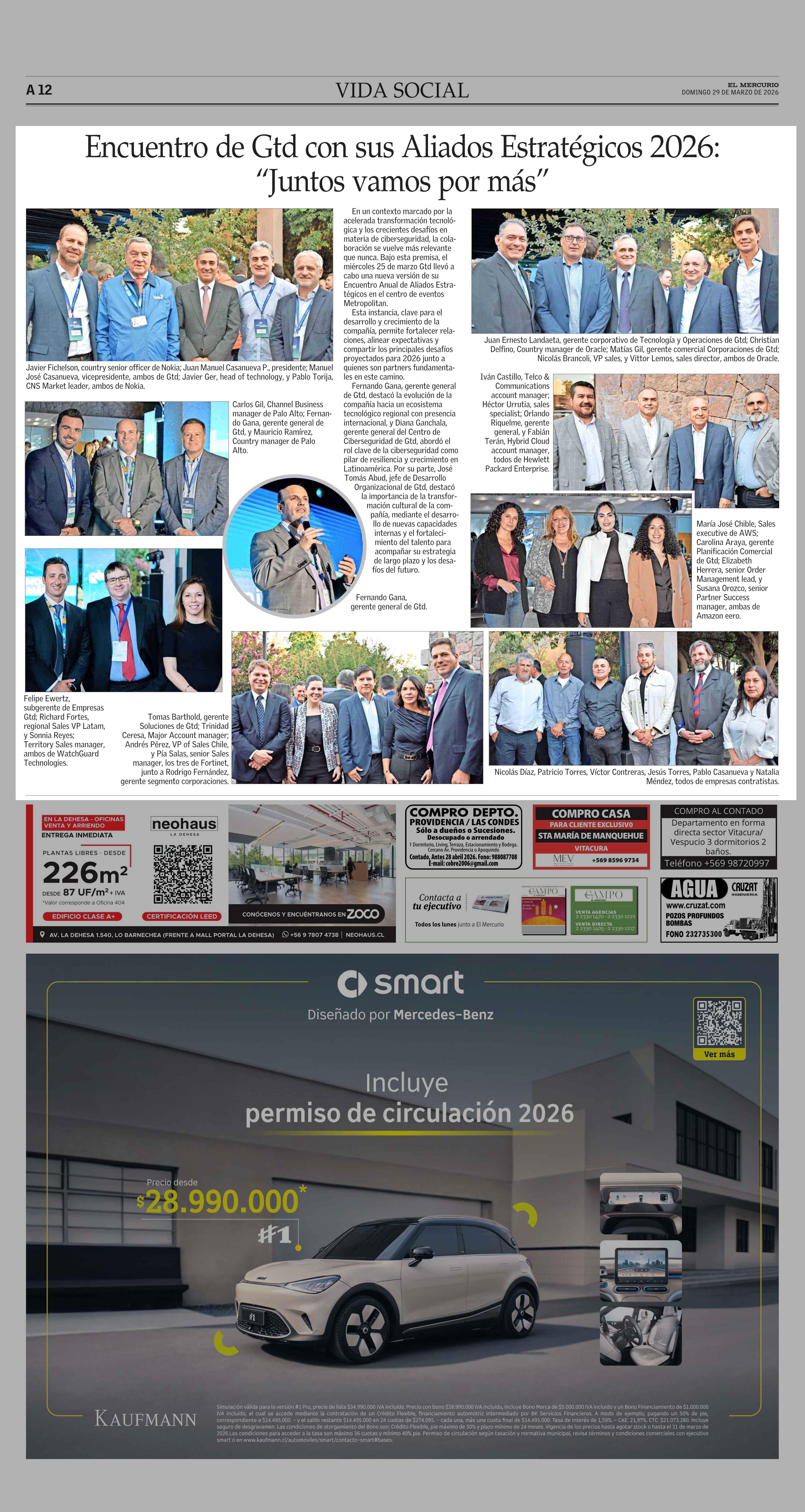 Encuentro de Gtd con sus Aliados Estratégicos 2026: “Juntos vamos por más” 29-03-2026 El Mercurio |