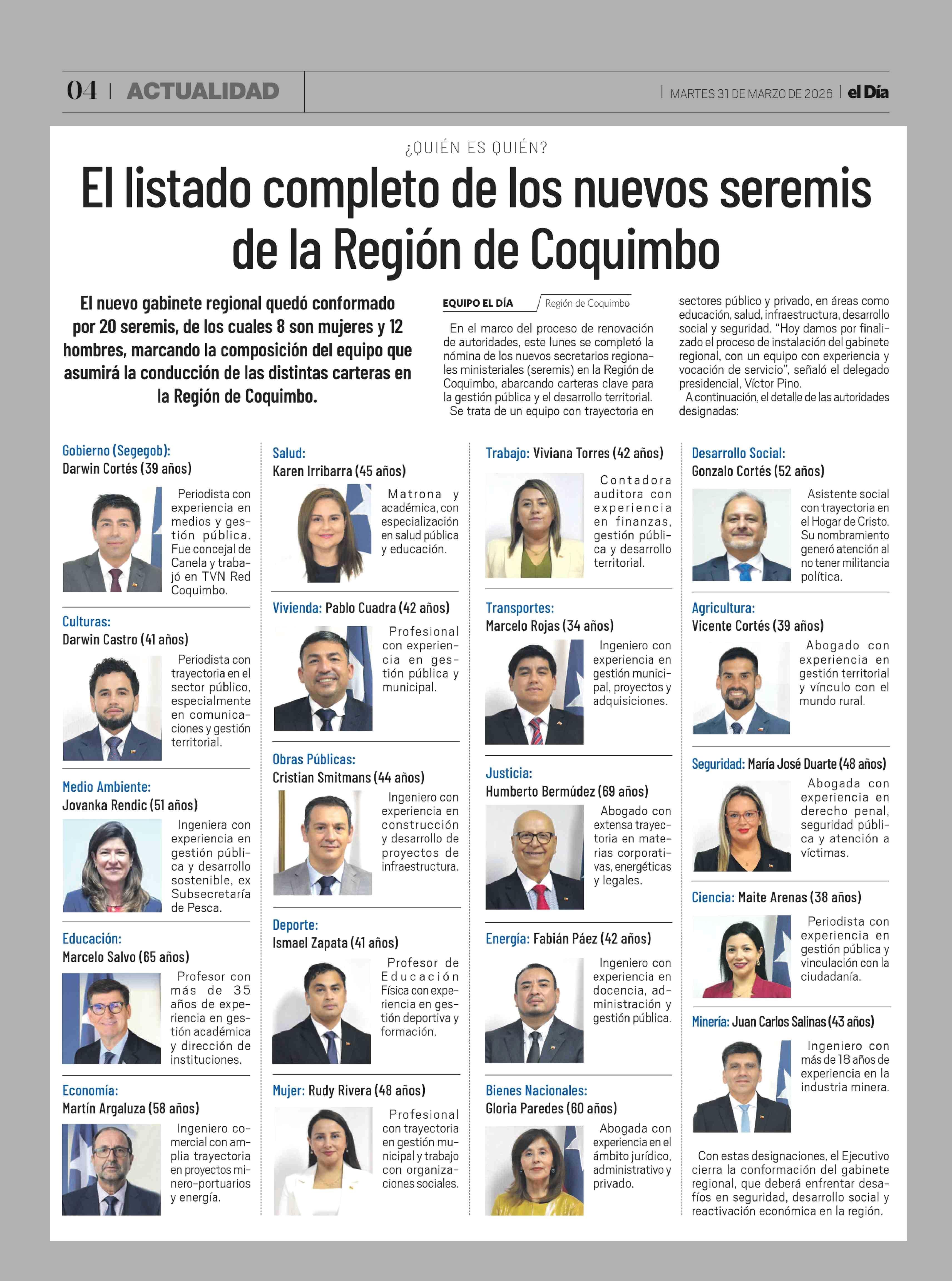 Título: El listado completo de los nuevos seremis de la Región de Coquimbo
