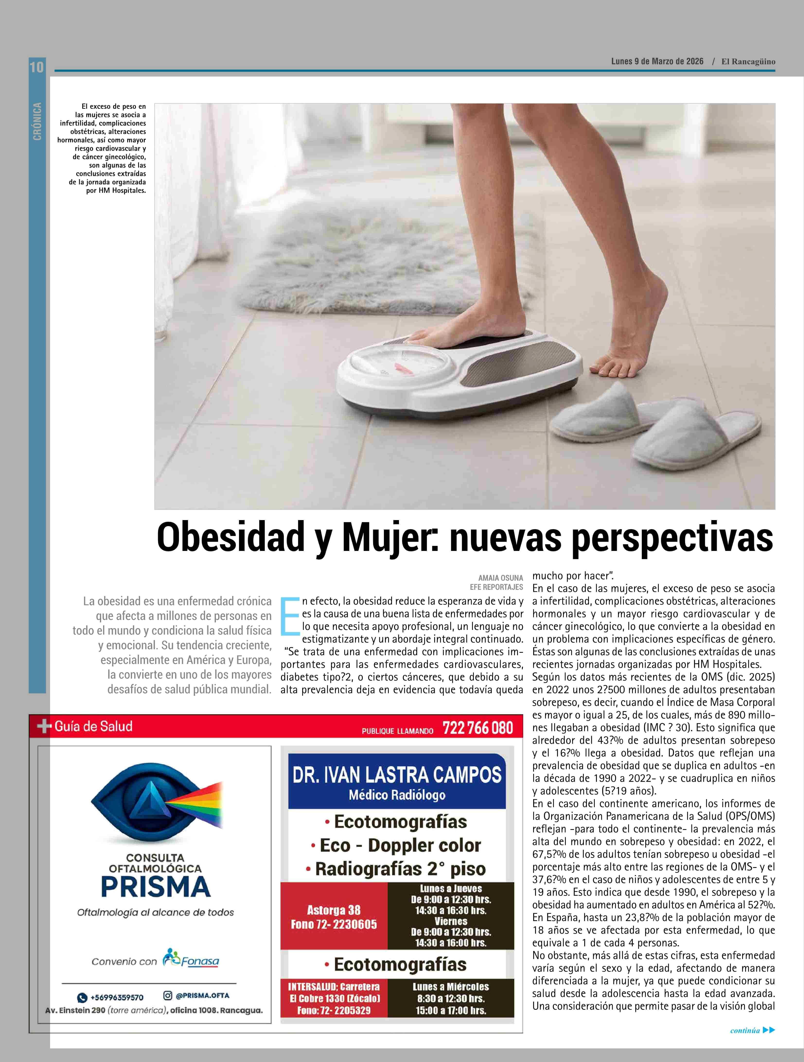 Obesidad y Mujer: nuevas perspectivas 09-03-2026 El Rancagüino |