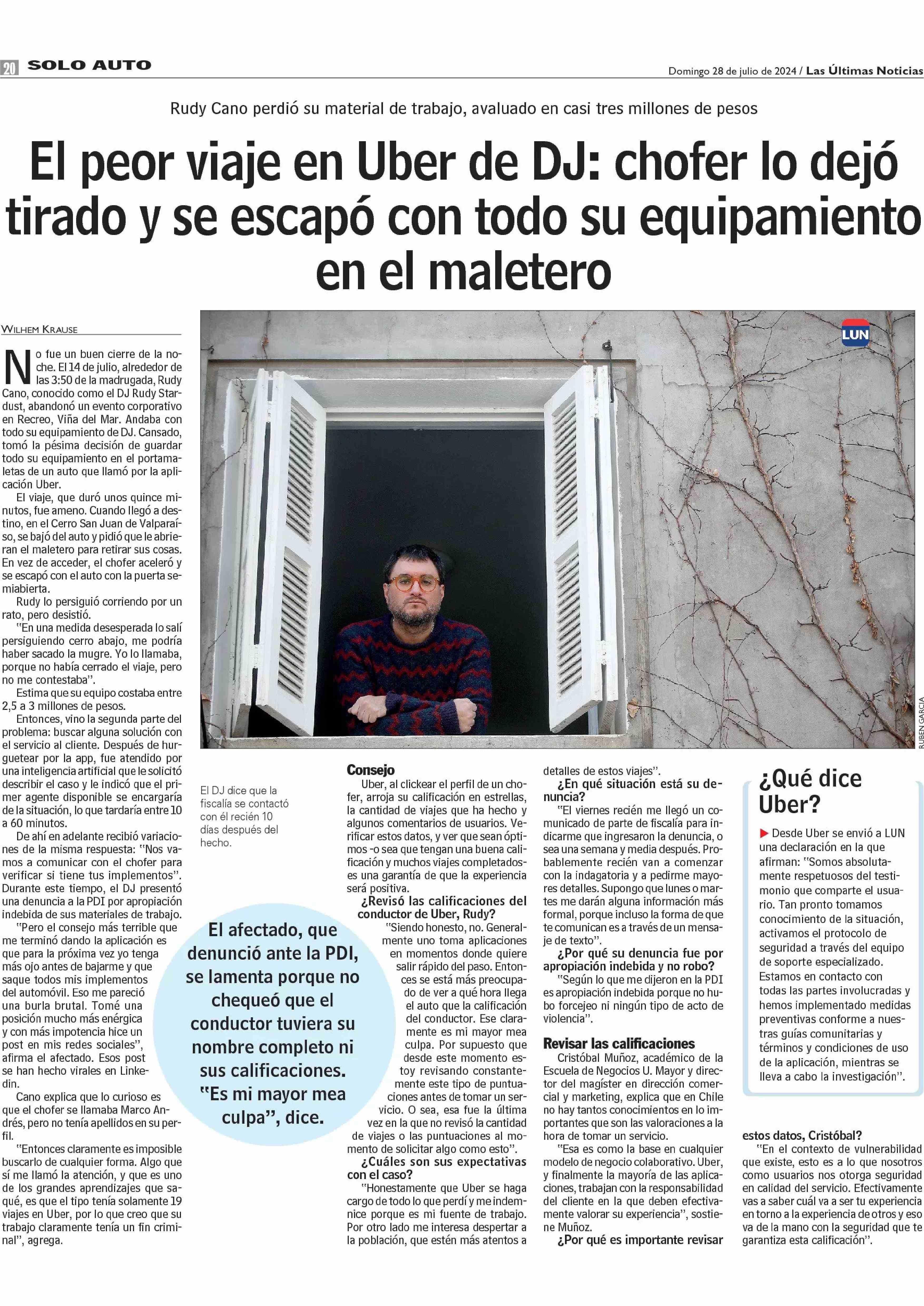 El peor viaje en Uber de DJ: chofer lo dejó tirado y se escapó con todo su equipamiento en el maletero 28-07-2024 Las Últimas Noticias |