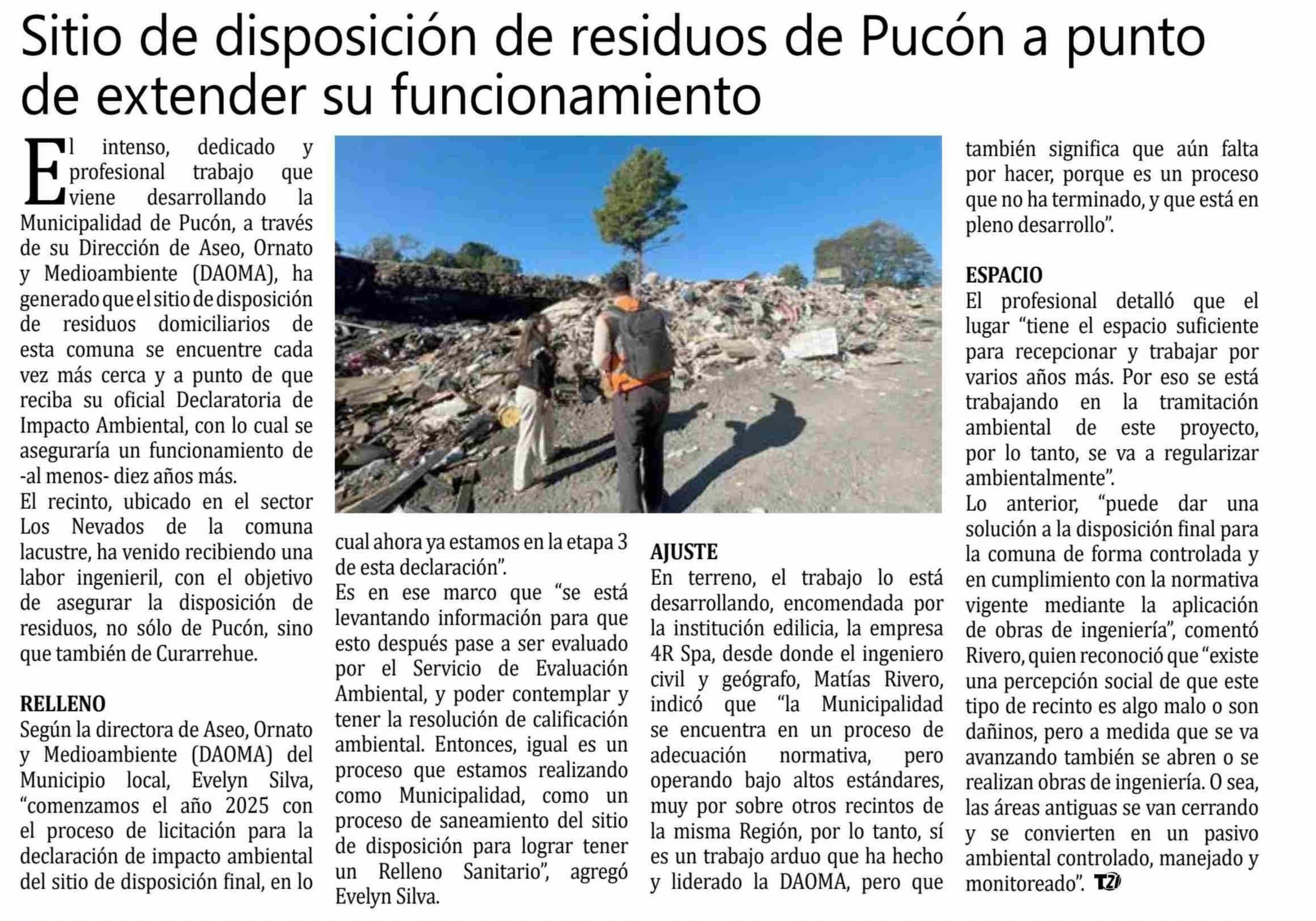 Título: Sitio de disposición de residuos de Pucón a punto de extender su funcionamiento
