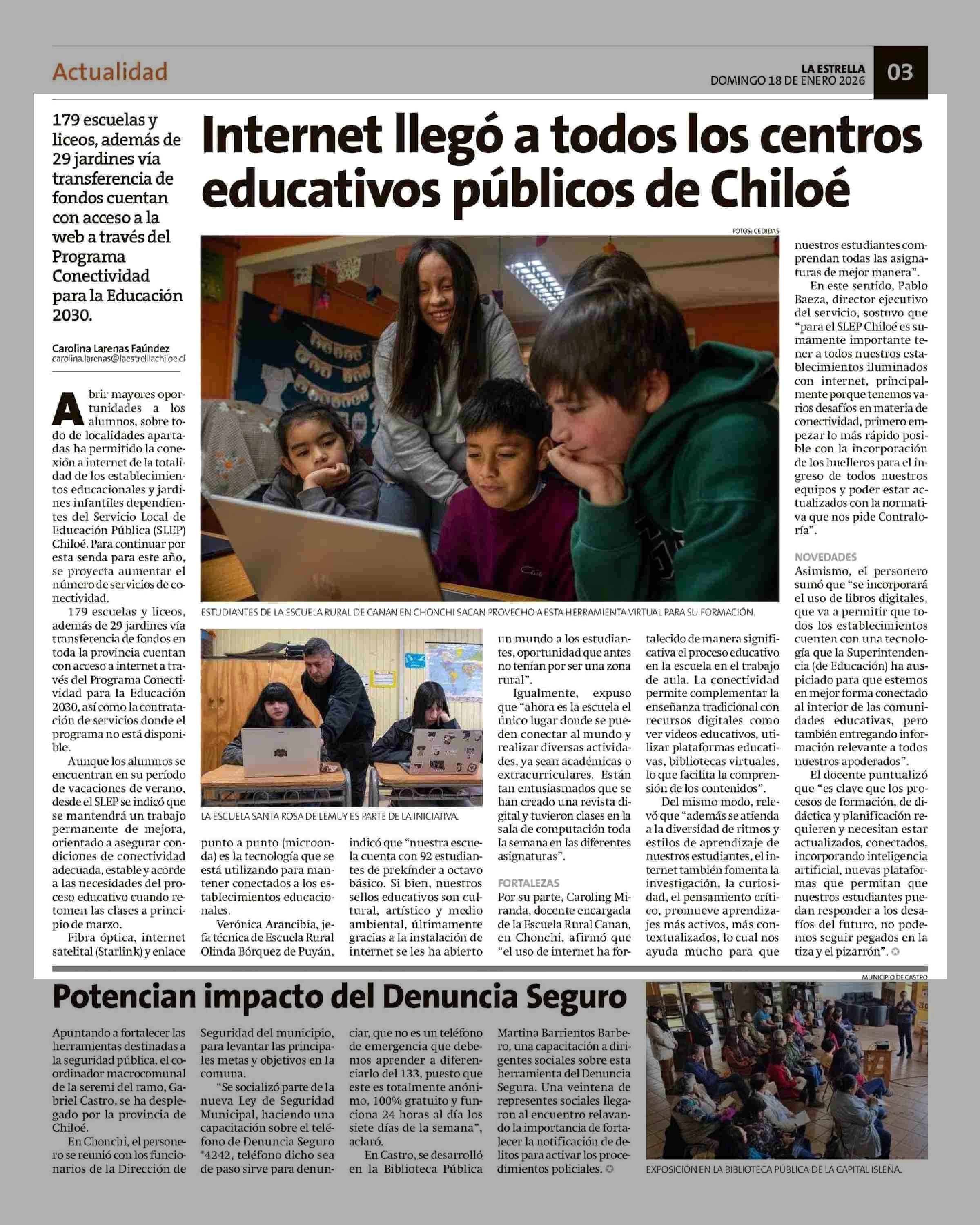Internet llego a todos los centros educativos públicos de Chiloé 18-01-2026 La Estrella de Chiloé |