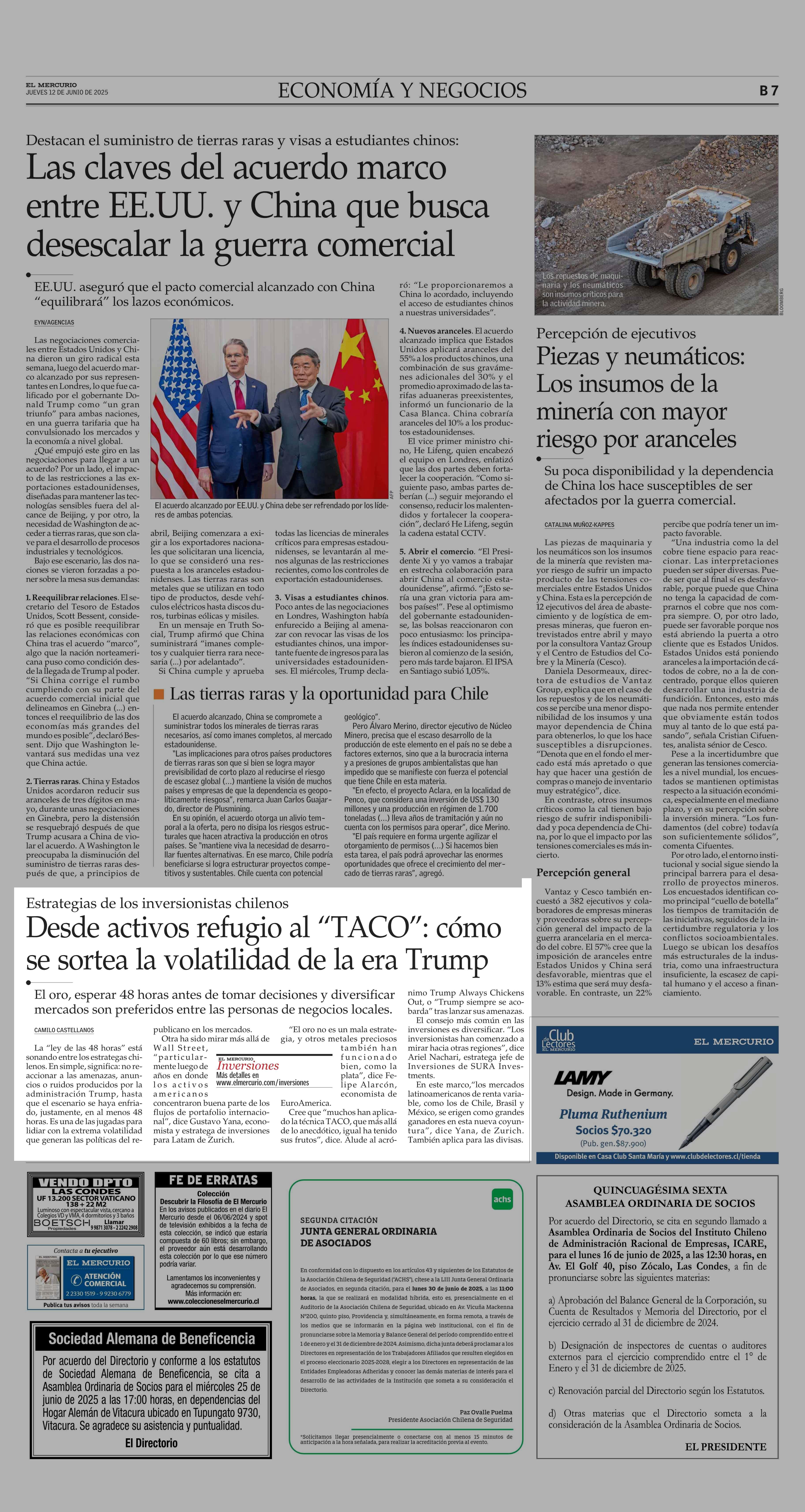 Desde activos refugio al "TACO": cómo se sortea la volatilidad de la era Trump 12-06-2025 El Mercurio |